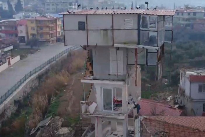 Merkez üssü Kahramanmaraş olan 7,7 ve 7,6 büyüklüğündeki depremlerin etkilediği Hatay’ın Antakya ilçesinde ilginç anlar yaşandı. Antakya’nın Narlıca Mahallesi Atatürk Caddesi’nde bulunan 4 katlı bina yıkılırken, 3 yıl önce yapılan ek yapıdaki güvercin evi ayakta kaldı. Binanın üzerindeki yapı, dün akşam merkez üssü Hatay’ın Defne ve Samandağ ilçeleri olan 6,4 ve 5,8 büyüklüğündeki depremler sonra da yine yıkılmadan kalmayı başardı.