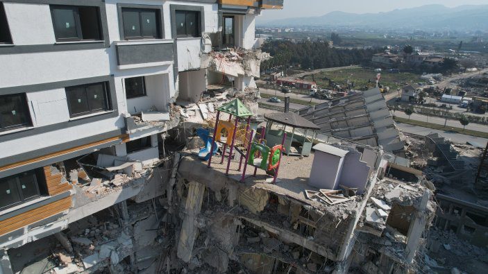 Bu kez yaşanan olayda, Hatay’da deprem sırasında çökme meydana gelen bir binada, zemin kat kolonlarının havuz yapılacağı gerekçesiyle kesildiği iddia edildi. Aynı binanın teras katında ise çocuk oyun parkı olduğu görüldü. Enkaza dönüşen binada çok sayıda kişi hayatını kaybetti.