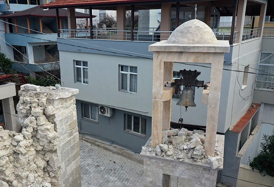 Depremler, Tokaçlı Mahallesi’nde 700 yıllık olduğu tahmin edilen ve 2020’de restore edilen kilisede de yıkıma yol açtı. Tavanı tamamen çöken, duvarlarının büyük bölümü yıkılan kiliseden geriye sadece çan kulesi kaldı. Tarihi yapının son durumu dronla görüntülendi.