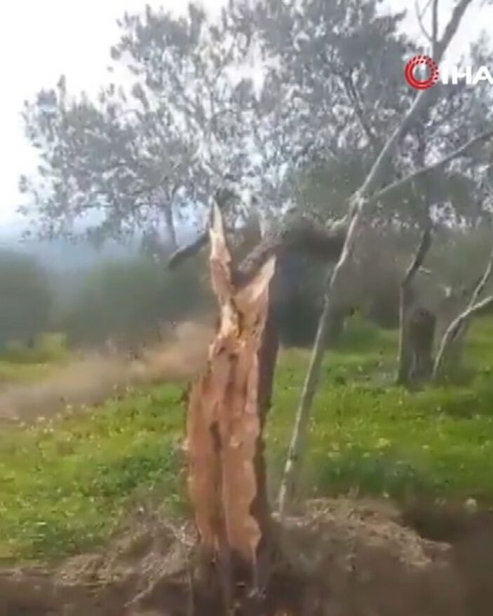 Fay, bir bahçede bulunan zeytin ağacını ortadan ikiye bölerek, parçalar arasındaki mesafeyi 10 metre açtı.
