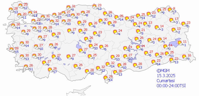 Meteoroloji Genel Müdürlüğü tarafından yapılan iddialara nazaran, ülkemiz genelinde yağış beklenmiyor. Marmara, Batı Karadeniz ile Doğu Anadolu’nun kesimli bulutlu, başka yerlerin az bulutlu ve açık geçeceği kestirim ediliyor. Gece ve sabah saatlerinde doğu kesitlerde buzlanma ve don olayı, iç ve doğu kısımlarda pus ve yer yer sis bekleniyor. Doğu Karadeniz’in iç kısımlarının yüksekleri ile Doğu Anadolu’nun yüksek ve dik yamaçlarında çığ tehlikesi bulunmaktadır.