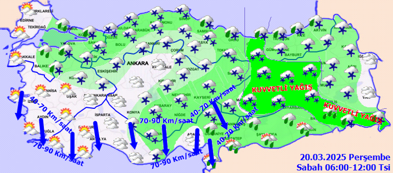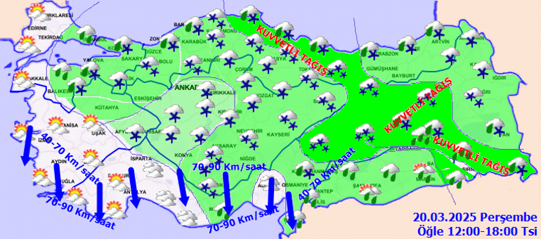 Çok bulutlu, aralıklı sağanak ve gök gürültülü sağanak yağışlı, kuzey ve yüksek etrafları karla karışık yağmur ve kar yağışlı geçeceği iddia ediliyor. Yağışların, kuvvetli olması bekleniyor.