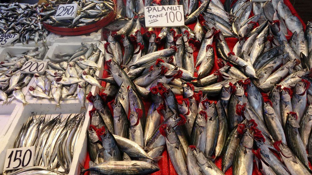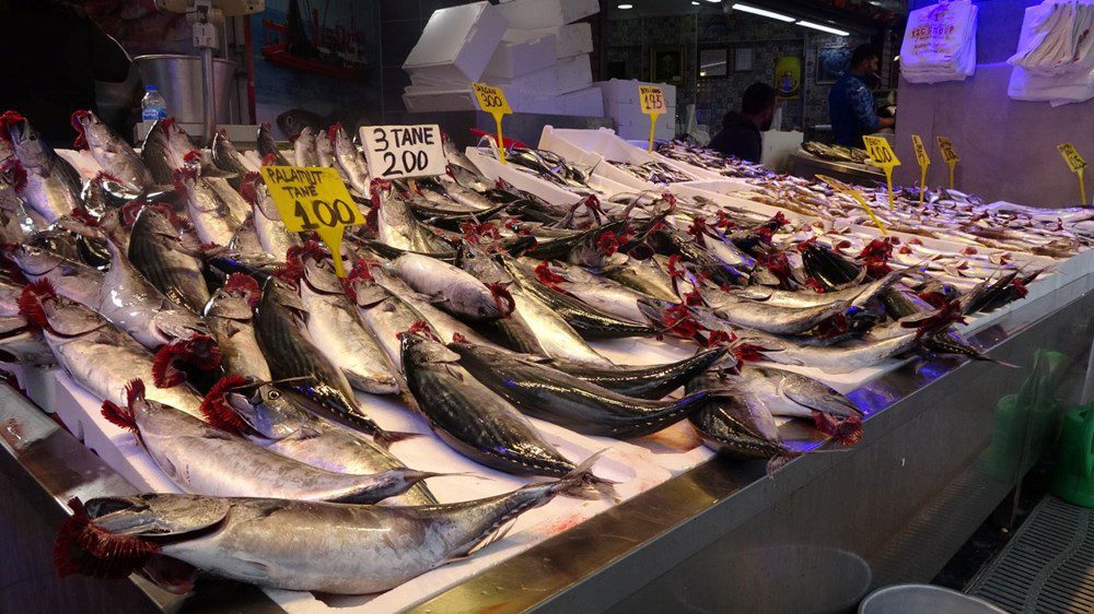 Palamut fiyatlarımız iriliğine nazaran üç tane 200 TL, tane 100 TL, Hamsi 200 TL, istavrit 75-125 TL, mezgit 150 TL, Havaların soğumasıyla birlikte balığa daha çok talep geliyor sıcak havalarda pek talep olmuyor.