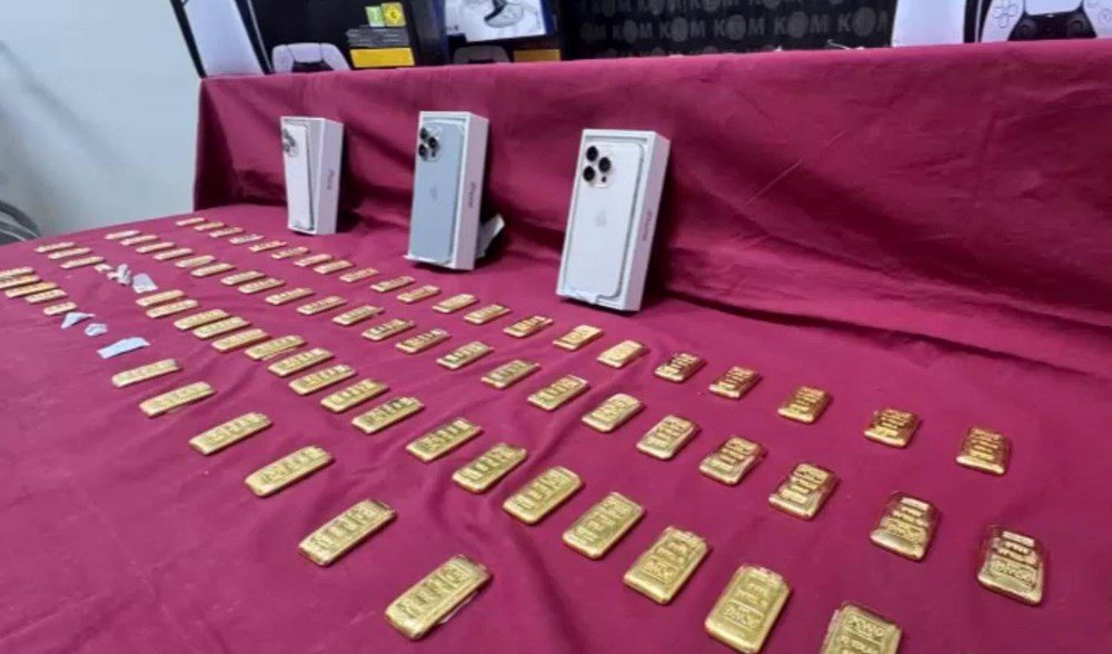 Araçta ve yolcular üzerinde yapılan aramada, her biri 110 gram 82 adet külçe altın, 18 oyun konsolu ve kolu (playstation), 3 akıllı cep telefonu ele geçirildi.