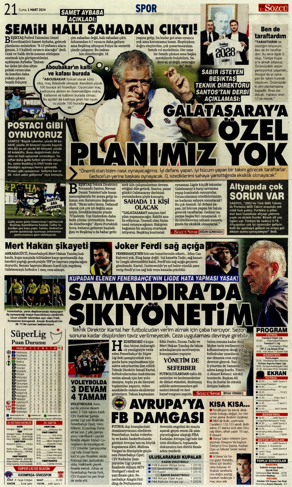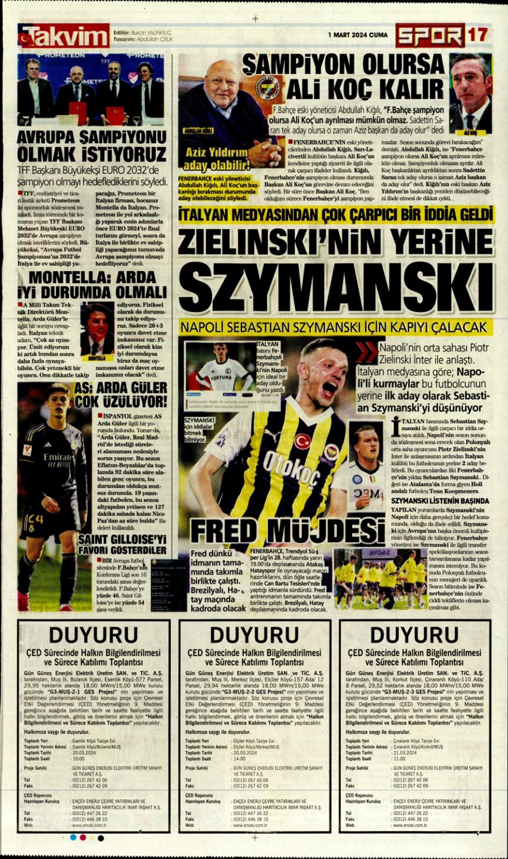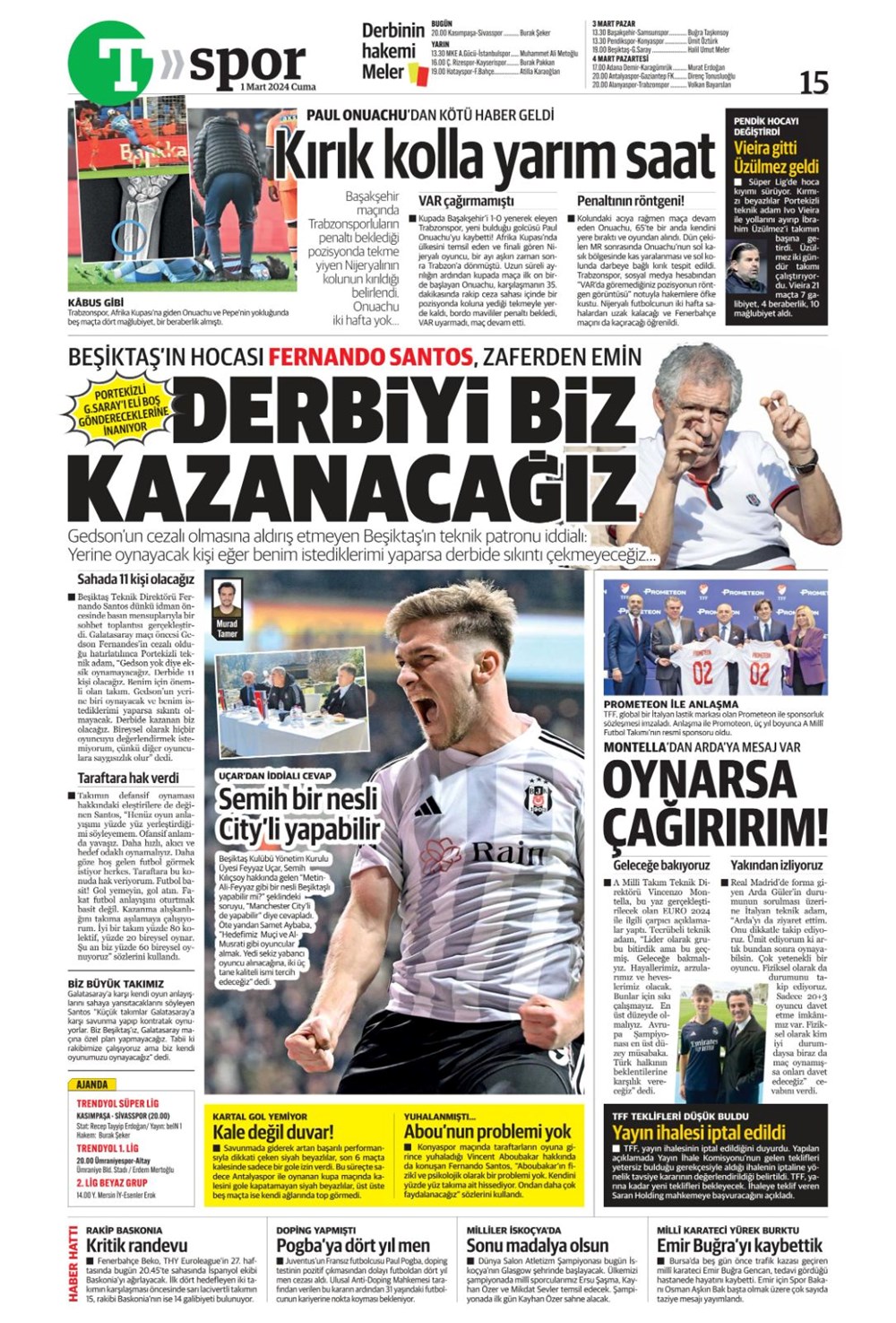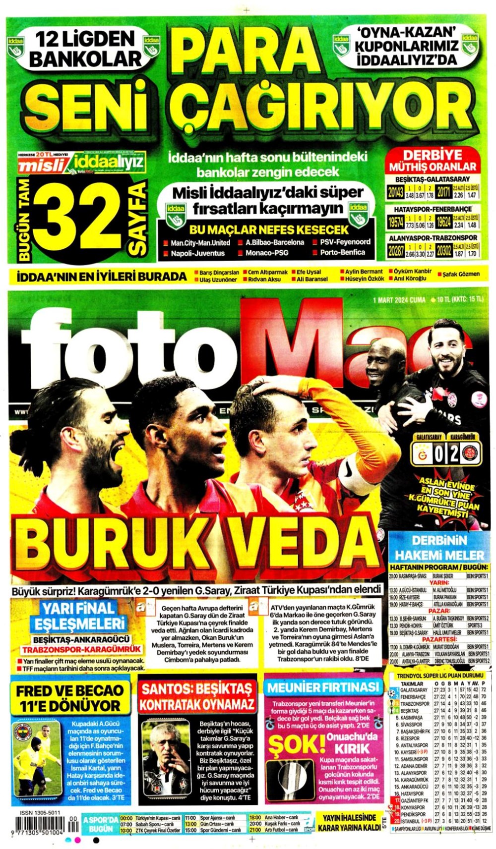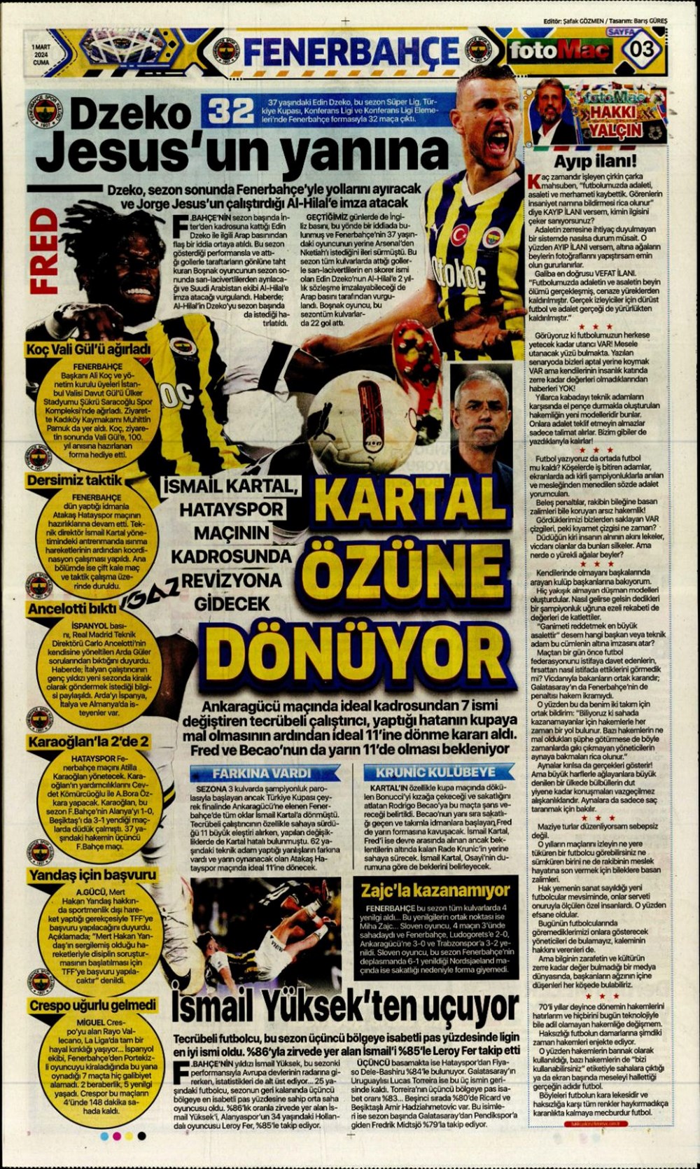 “Fenerbahçe’de Roberto Firmino bombası” (9 Şubat 2025 spor manşetleri)