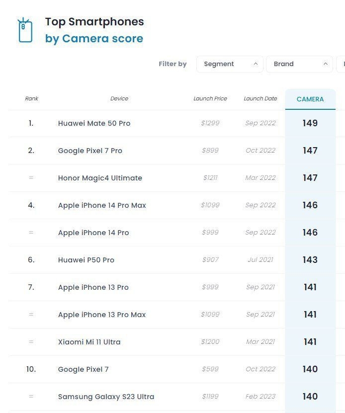 DxOMark’a göre, en iyi kameraya sahip akıllı telefonlar şu şekilde: