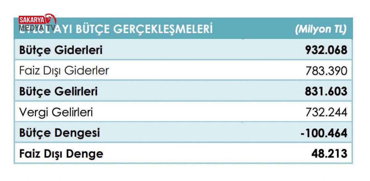 Ayrıca, faiz dışı bütçe masrafları 6 trilyon 246 milyar TL ve faiz dışı açık ise 161,3 milyar TL olarak gerçekleşti.