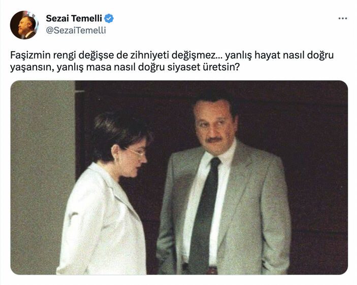 HDP’li Sezai Temelli, Meral Akşener’in yanlış ittifak kurduğu, HDP ile bir yola girmesi gerektiğini sözlerine gizleyen bir ifade paylaştı.