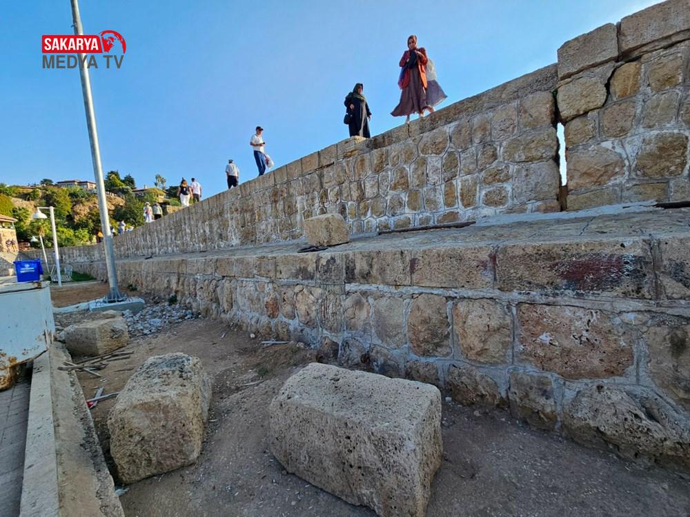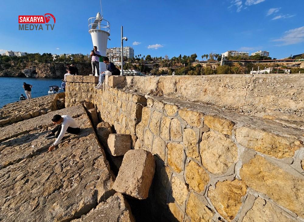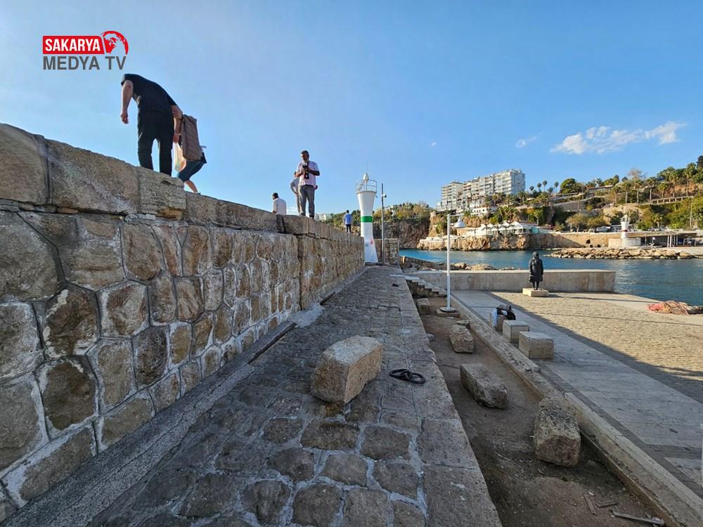 Geçen yılki fırtınada 15’e yakın yüzlerce kiloluk taş blokların düştüğü iskelede yapılan teknik incelemelerde, binlerce kişinin üzerinde yürüyüş yaptığı iskele yüzeyinin 15 derece limana gerçek tarafa eğildiği de ortaya çıktı.