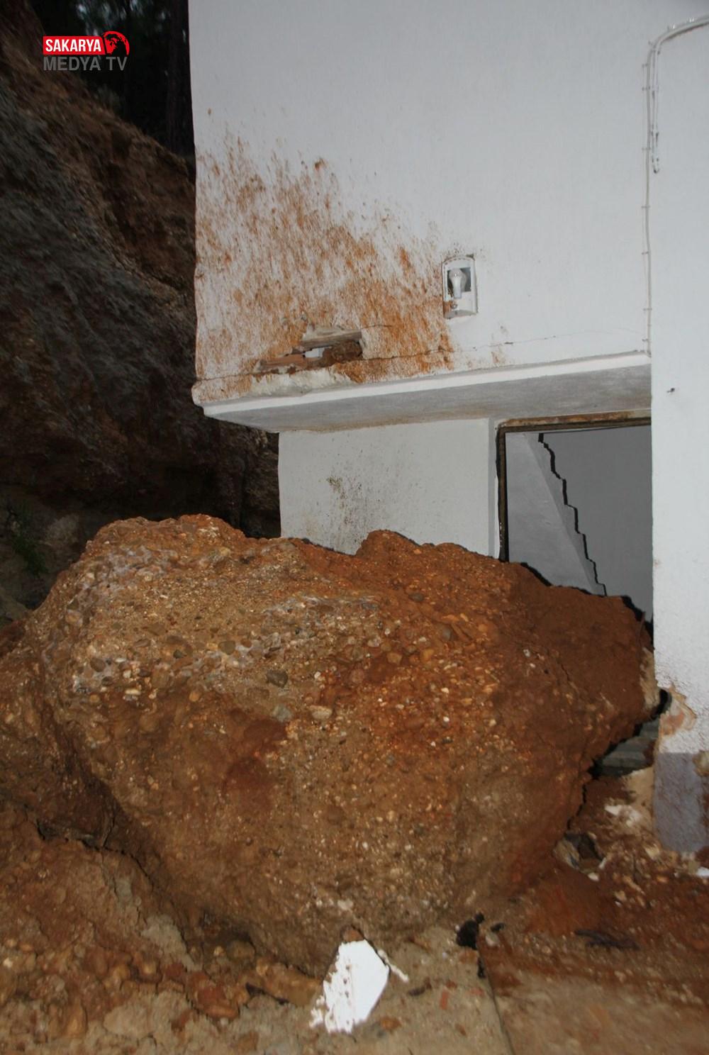 Antalya’nın Serik ilçesi Merkez Mahallesi Seyir Zirvesi mevkiinde saat 04.00 sıralarında çok yağış nedeniyle heyelan oluştu. Kayan kaya kesimi, doruğun yanındaki 2 katlı bir meskenin kapısına çarptı.