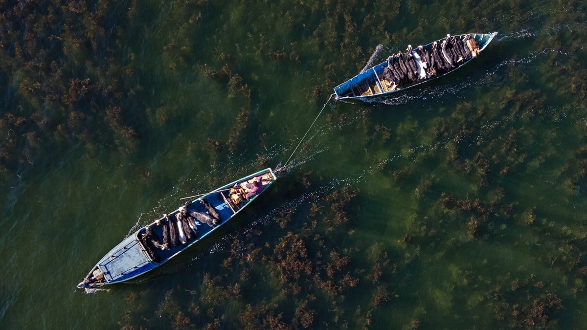 Konya’da kartpostal gibi kareler: Kışı adada geçiren hayvanlar geri getirildi