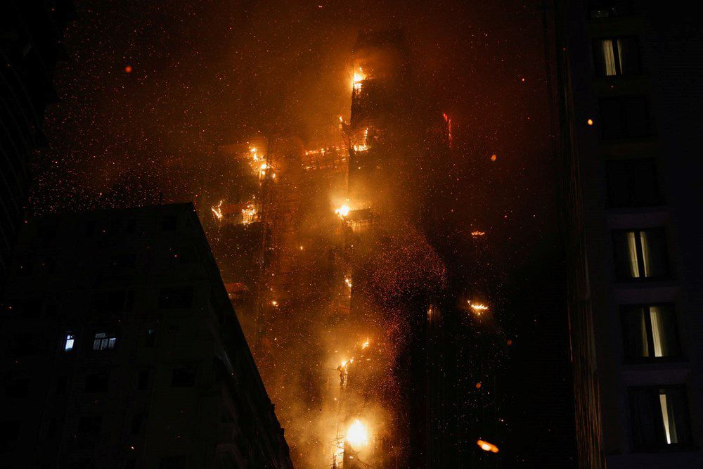 Yangın gökdelenin birçok katına sıçrarken, bazı katlarda alevlerin şiddetlendiği ve patlamalar yaşandığı belirtildi.