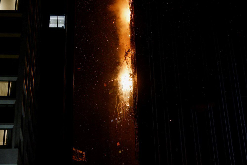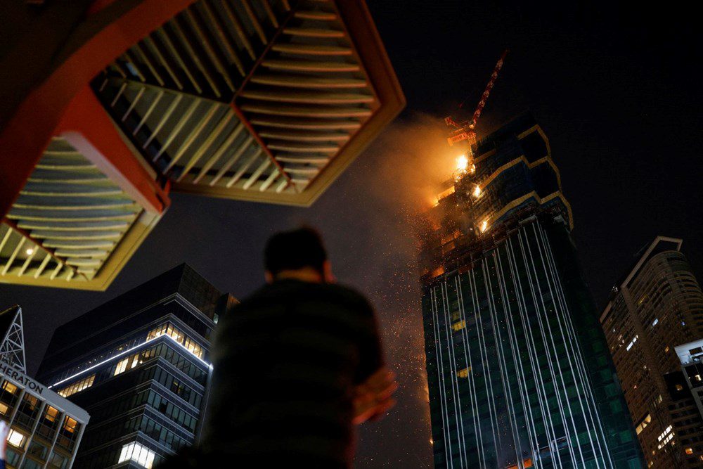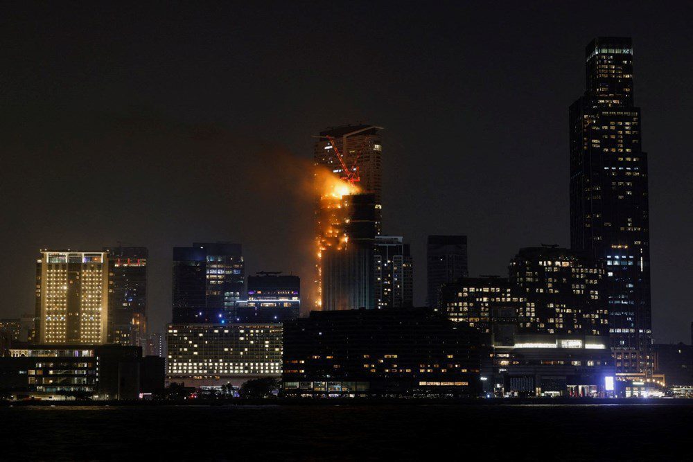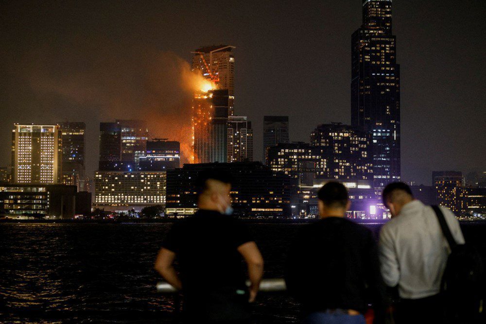 Hong Kong’un Tsim Sha Tsui bölgesinde inşaat halindeki gökdelende yerel saatle 23.10 sularında yangın çıktı.