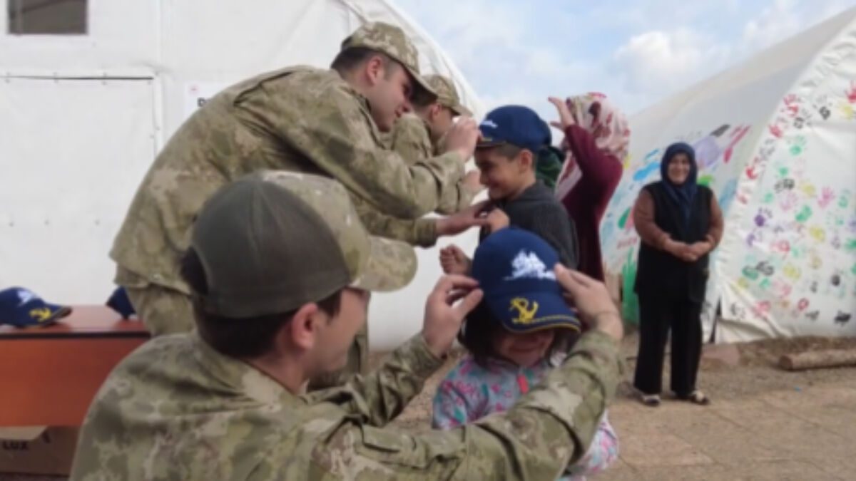 Mehmetçik, depremzede çocuklara komutanların gönderdiği kıyafetleri dağıttı