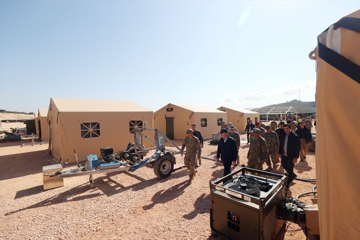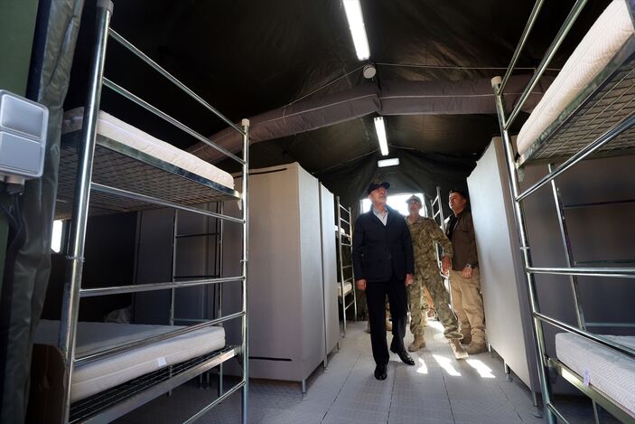NATO yetkilileri ve askeri yetkililerden çadır kente ilişkin bilgi alan Akar, NATO çadır kentlerinin kurulmasına yönelik çalışmaların devam ettiğini belirtti.