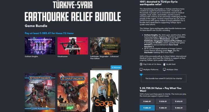 Humble Bundle’ın sunmuş olduğu paketin içerisinde 72 oyun bulunuyor ve paketin değeri 1100 dolar. Humble, bu paketi 565 TL’lik bir fiyat ile sunuyor ve elde edilen tüm gelirin devam eden Türkiye-Suriye deprem yardımı çabalarını desteklemek için Direct Relief, International Medical Corps ve Save the Children’a gideceğini belirtiyor.