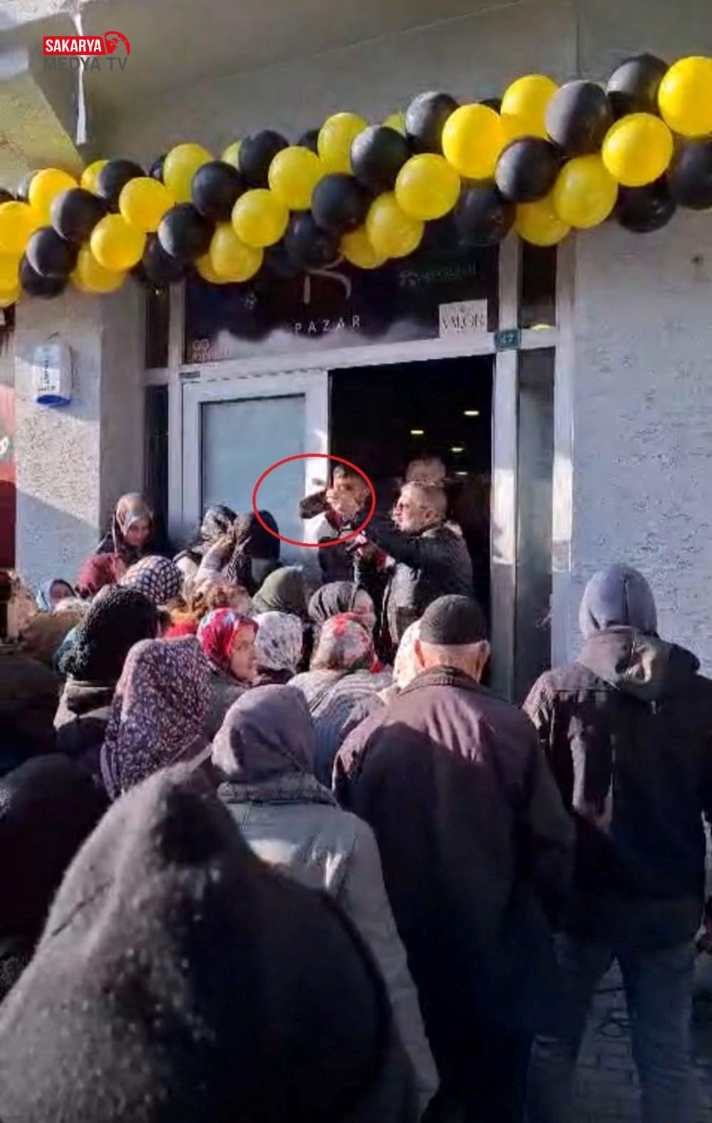 Bursa’nın Yıldırım ilçesi Millet Mahallesi’nde ev eşyası satan bir mağazası açılışa özel fiyatları yarı yarıya indirince açılış için sabahın erken saatlerinde bekleyen vatandaşlar, mağazanın önünde uzun kuyruklar oluşturdu. Kapıların açılmasıyla başlayan alışveriş yarışı izdihama dönüştü. Vatandaşların birbirini ezdiği anlar kameraya yansırken, izdiham sonrası terlik bulan sunucu ise vatandaşlara seslenerek “Terliğini düşüren abla nerde? Bu kapmayanlar terliği unutturur.” diye seslendi.