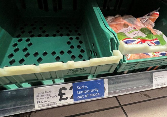 Avrupa’nın güneyindeki ve Kuzey Afrika’daki hava koşulları, İngiltere’de meyve ve sebze reyonlarında etkisini gösterdi. Ülke, söz konusu ürünlerde artan oranlarda kıtlıkla karşı karşıya. Bu kalemlerden biri de domates. Bu durum üzerine, İngiltere’de bazı süpermarketler, “tedarik zorlukları” nedeniyle müşteri alımlarına sınırlamalar getirdi.