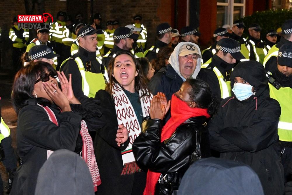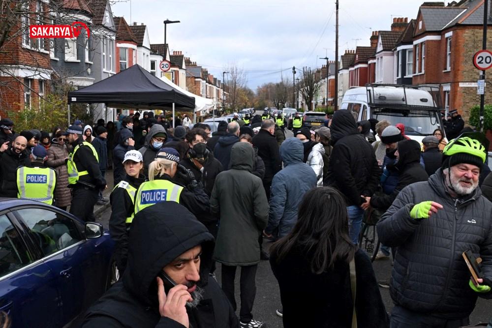 Gözaltı süreçlerinin akabinde başlayan arama çalışmalarına Londra’daki terör örgütü PKK sempatizanları reaksiyon gösterdi.