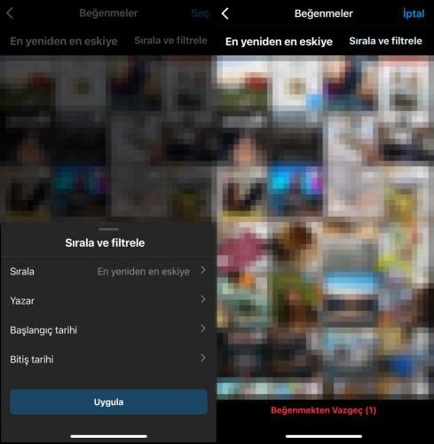 Instagram, beğendiğiniz gönderilerden beğenileri geri çekmeniz (beğeni silmeniz) için kısayol sunar.