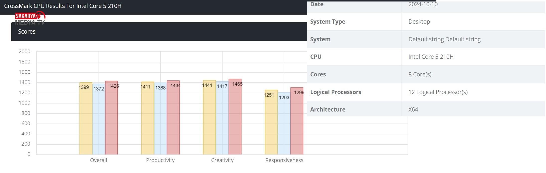 Intel Core “H” işlemcilerin ise, orta seviye ve düşük güç tüketimine sahip cihazları hedeflediğini söyleyelim. Sızdırılan görüntülere baktığımızda, Core 5 210H, 8 çekirdek ve 12 iş parçacığına sahip. Bunun 4 performans ve 8 verimlilik çekirdeği sunan Core i5-12450H ile benzer olduğunu belirtelim. Ayrıca CrossMark testlerinde yeni işlemci 1.399 ortalama puan alıyor. Core i5-12450H ise benzer testlerde 1.360 puana ulaştığını hatırlatalım.
