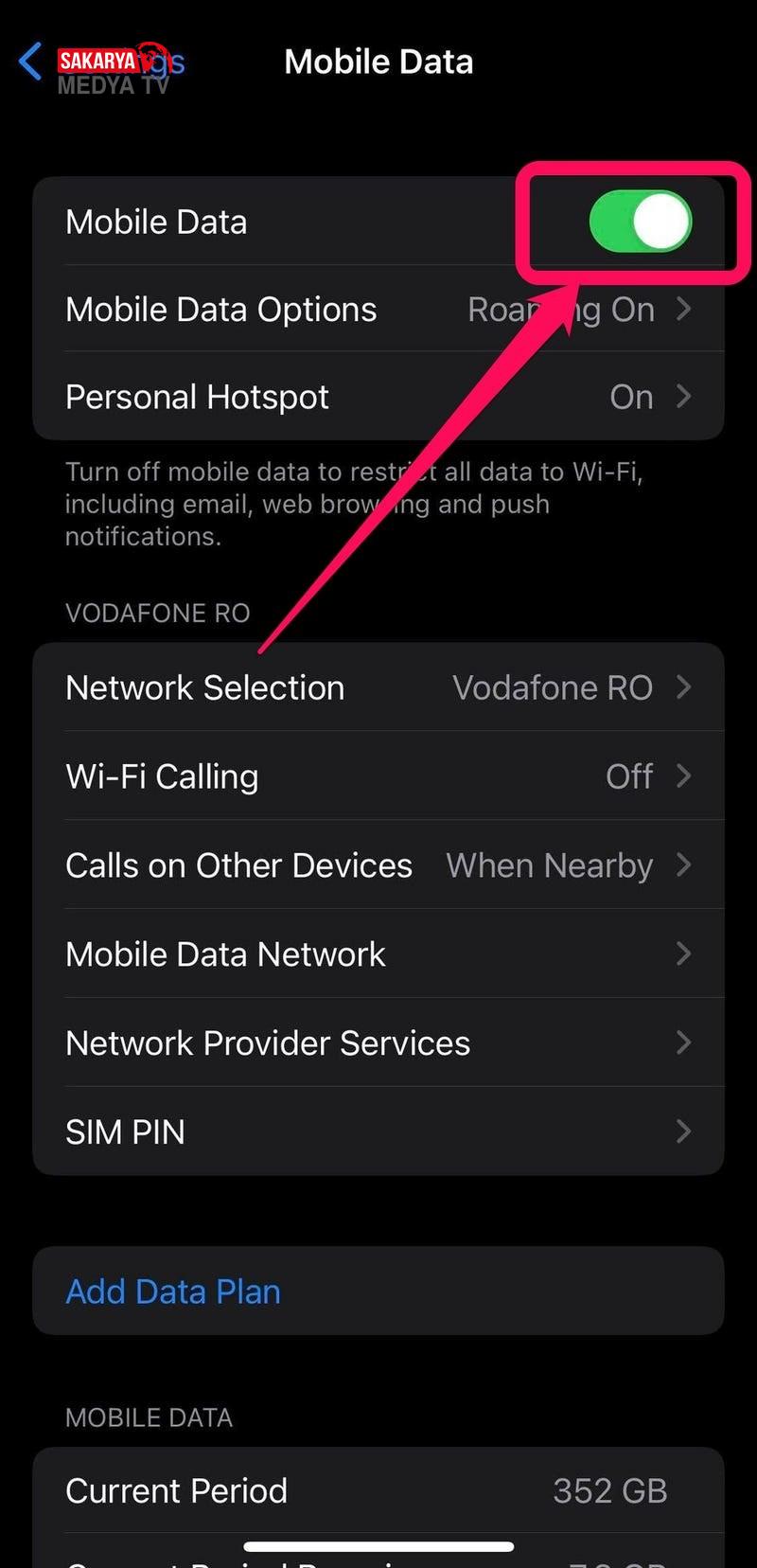 iPhone’unuzun servis sağlayıcısının size kapsama alanı sağlaması için baz istasyonunun bulunduğu bir alanda olmanız gerekir. Büyük bir binanın alt katlarındaysanız (hastane gibi) kırsal bir alandaysanız ya da metrodaysanız şebeke sorunu yaşayabilirsiniz. Ekranın sağ üst köşesindeki sinyal gücü çubuklarını kontrol edin. Hücresel veri ayarını açıp kapatmak, iPhone’un şebekeye bağlanmasına yardımcı olabilir. Mobil veri ayarı için şu adımları izleyin: