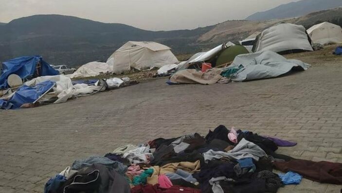 Devrilen çadırlardaki eşyalar da sağa sola savruldu. Depremin ardından rüzgarla çadırları yıkılan vatandaşlar da uçuşan çadır ve kıyafetlerini kurtarmaya çalıştı.