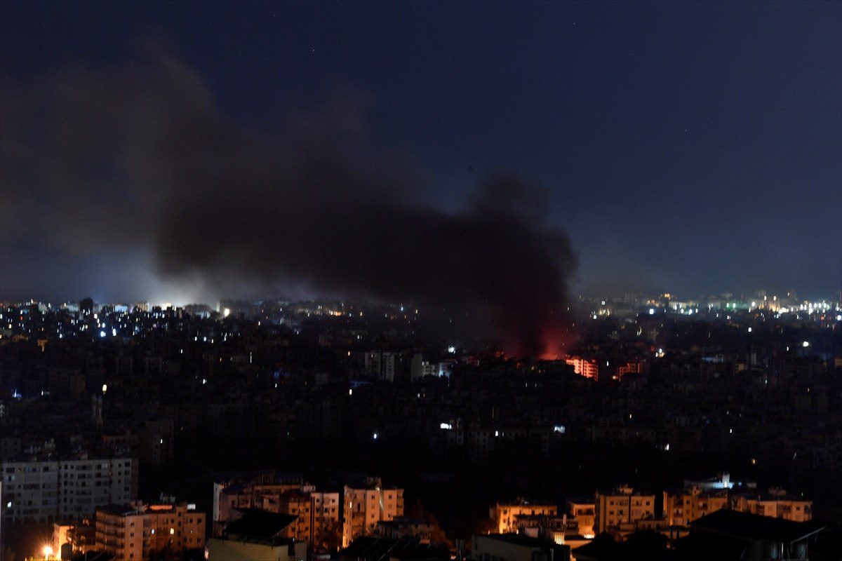 AA İsrail hava ataklarının sürdüğü Lübnan’ın başşehri Beyrut’un güneyinde art geriye şiddetli patlamalar yaşandı. İsrail Beyrut’un güneyine yönelik taarruzlarını sıklaştırırken 23 Eylül’den bu yana yaşanan en şiddetli patlamalardan biri meydana geldi.