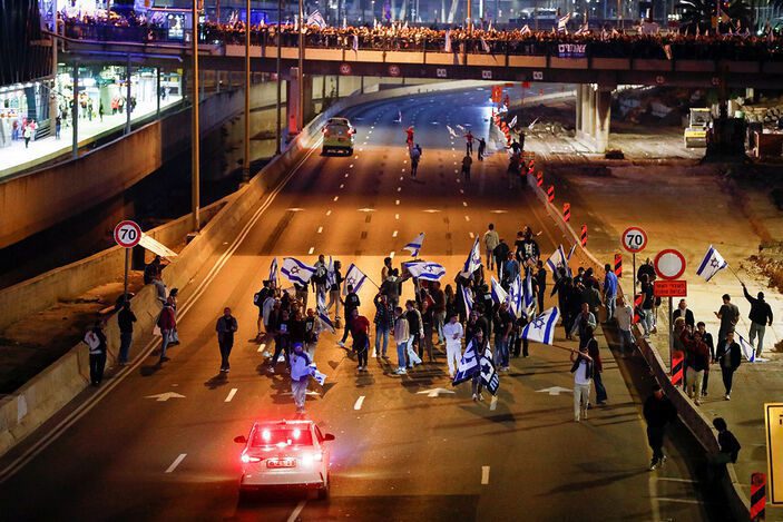 Netanyahu öncülüğündeki aşırı sağcı koalisyon hükümetinin yargı düzenlemesine karşı özellikle her hafta cumartesi akşamı ülke genelinde kitlesel olarak gösteri düzenleyen İsrailliler, protestoların onuncu haftasında yine sokaklardaydı. Başta Tel Aviv olmak üzere, Hayfa, Batı Kudüs, Birüssebi ve Netanya gibi büyük kentler dahil ülke çapında onlarca noktada gerçekleştirilen gösterilere on binlerce İsrailli katıldı.