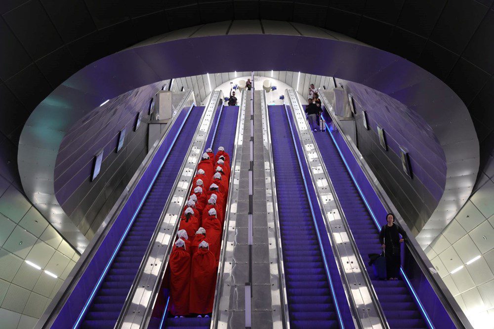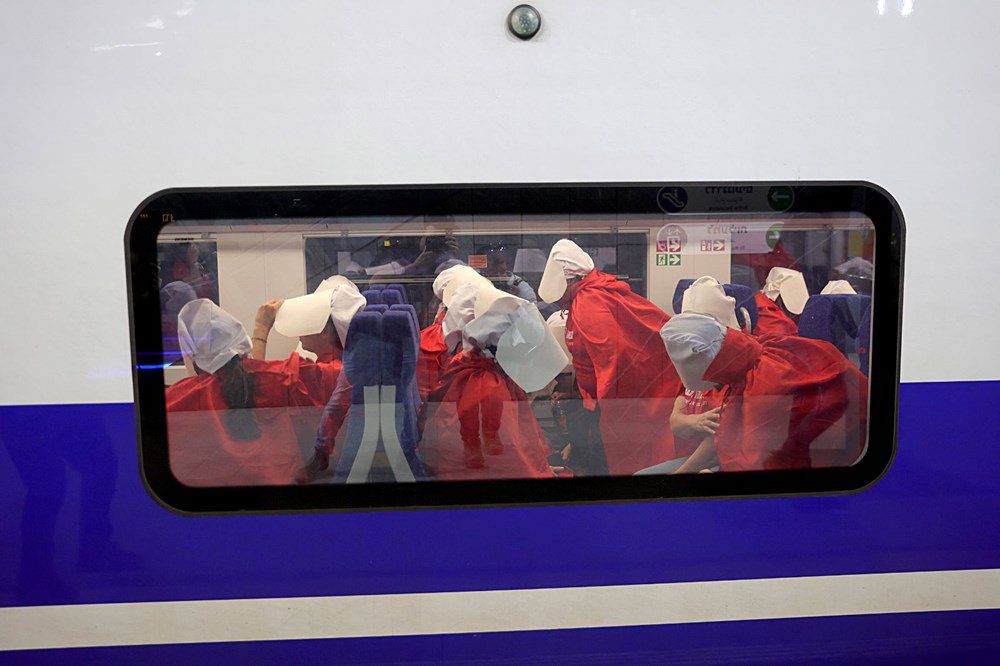 Bazı protestocular ise, geçmiş protestolarda olduğu gibi Margaret Atwood’un dünyaca ünlü “The Handmaid’s Tale” adlı romanındaki hizmetçiler gibi uzun kırmızı elbiseler ve beyaz başörtüleri giyerek, Kudüs tren istasyonunda yargı reformuna tepki gösterdi.