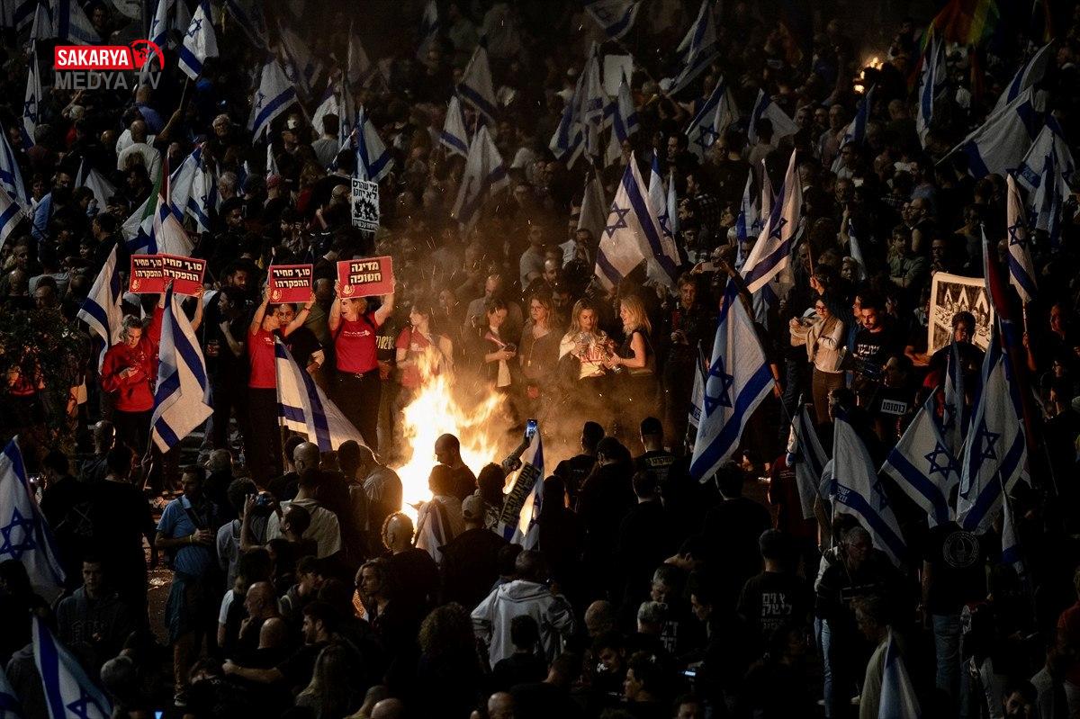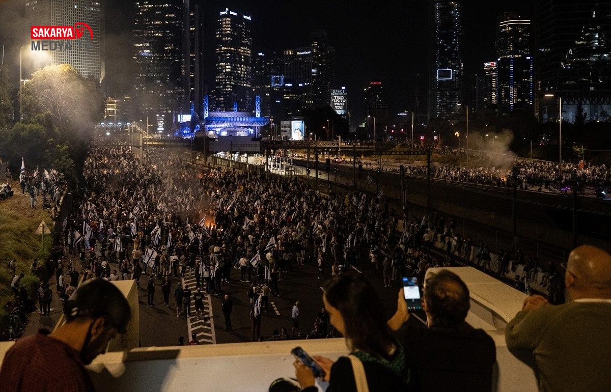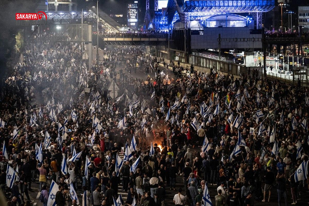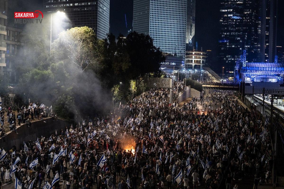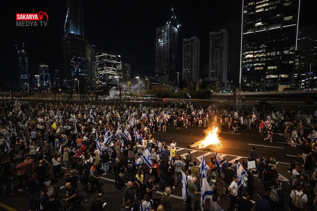 Netanyahu’nun kararını protesto etmek için çok sayıda kişi başşehir Tel Aviv’deki Ayalon Caddesi’nde toplanmaya başladı.