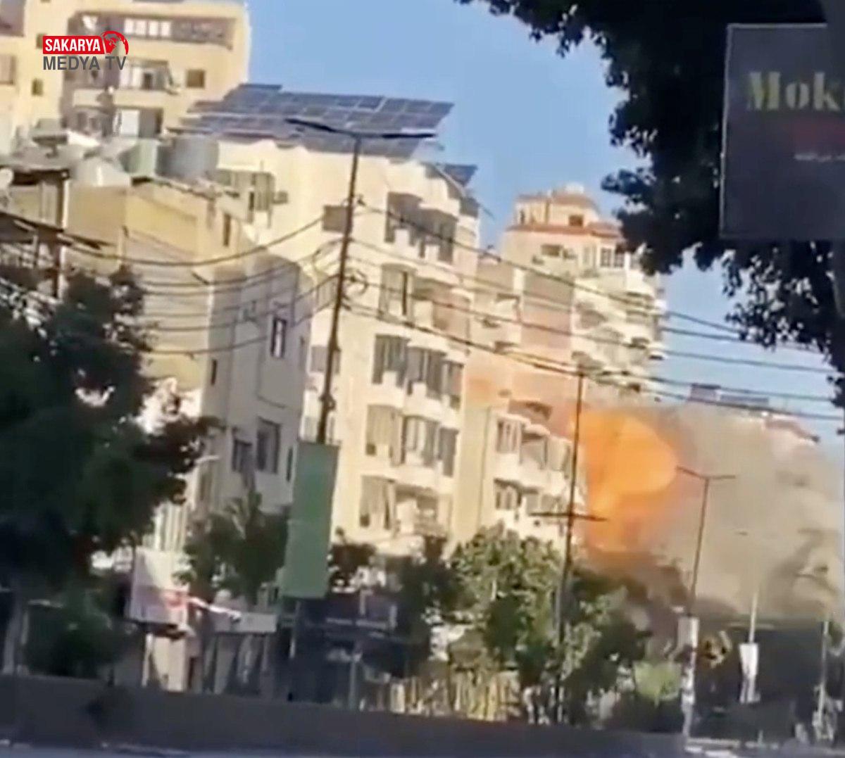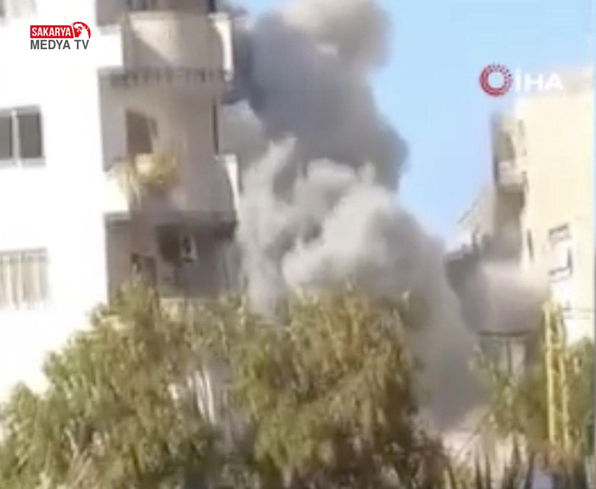 Çok katlı bir binayı maksat alan İsrail güçlerinin vurma anları kameraya yansıdı. Saldırıda can kaybı olup olmadığına dair bir açıklama yapılmadı.