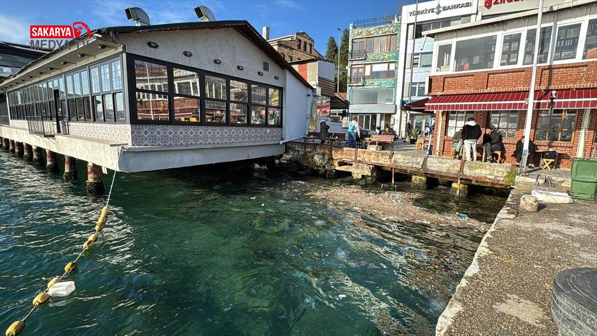 Onçeşmeler Meydanı sahilinde kıyaya vuran çöpler, deniz yüzeyini kapladı.