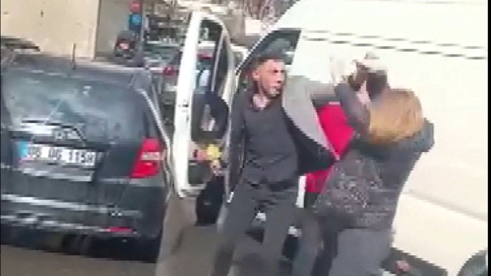Sürücü, minibüsün kapısını açmaya çalıştığı sırada aracından inen sürücü, bayana saldırdı.