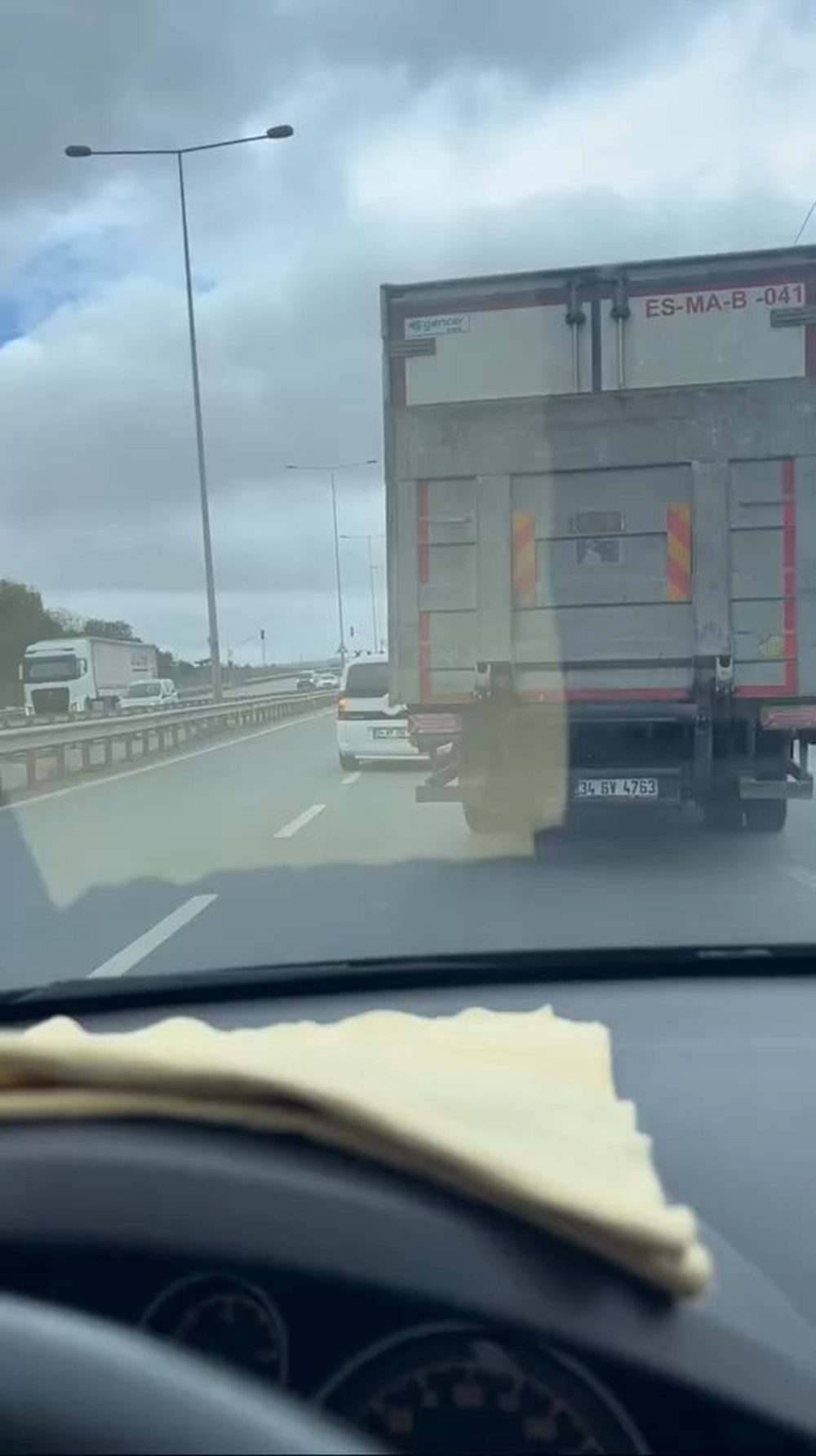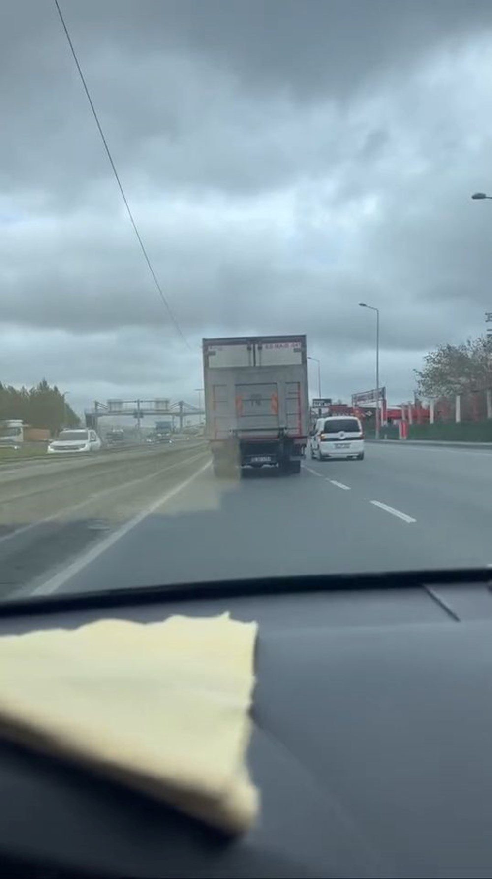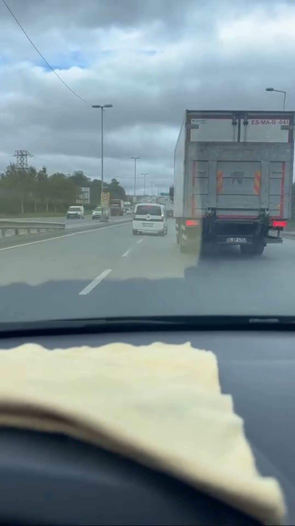 İstanbul’daki Arnavutköy-Sultangazi yolunda hafif ticari şoförü ve kamyon sürücüsünün yol verme inatlaşması öteki şoförlere kaza tehlikesi yaşattı. Ani hareketlerle şerit değiştiren şoförler kazaya davetiye çıkardı.