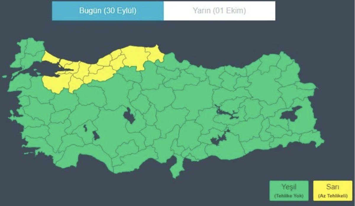Haber Merkezi Türkiye sıcak bir yaz ayını geride bırakırken, Eylül aralıklı olarak yağışlarla sonbaharın yüzünü gösterdi. Geçtiğimiz hafta tesirini sürdüren sıcak hava İstanbul ve Ankara dahil olmak üzere tüm yurtta bugün prestijiyle sona erdi. Meteoroloji Genel Müdürlüğü’nden İstanbul ve Ankara ile birlikte birçok vilayet için gök gürültülü sağanak yağış uyarısı yapıldı.