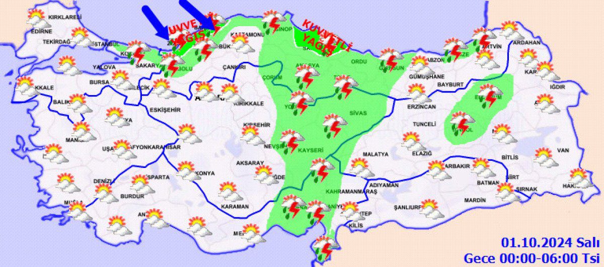 BOLU °C, 20°CParçalı ve çok bulutlu, sağanak ve gök gürültülü sağanak yağışlı geçeceği varsayım ediliyor. Yağışların; lokal kuvvetli olması bekleniyor. DÜZCE °C, 23°CParçalı ve çok bulutlu, sağanak ve gök gürültülü sağanak yağışlı geçeceği iddia ediliyor. Yağışların; mahallî kuvvetli olması bekleniyor. SİNOP °C, 28°CParçalı ve çok bulutlu, sağanak ve gök gürültülü sağanak yağışlı geçeceği iddia ediliyor. Yağışların; öğlen saatlerinden itibaren mahallî kuvvetli olması bekleniyor.