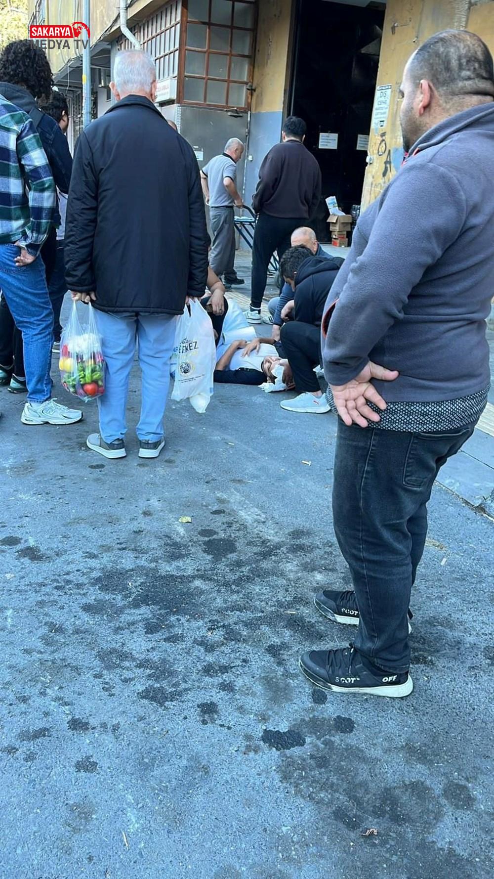 Genç yere savrulurken, etraftakiler koşarak yanına geliyor.