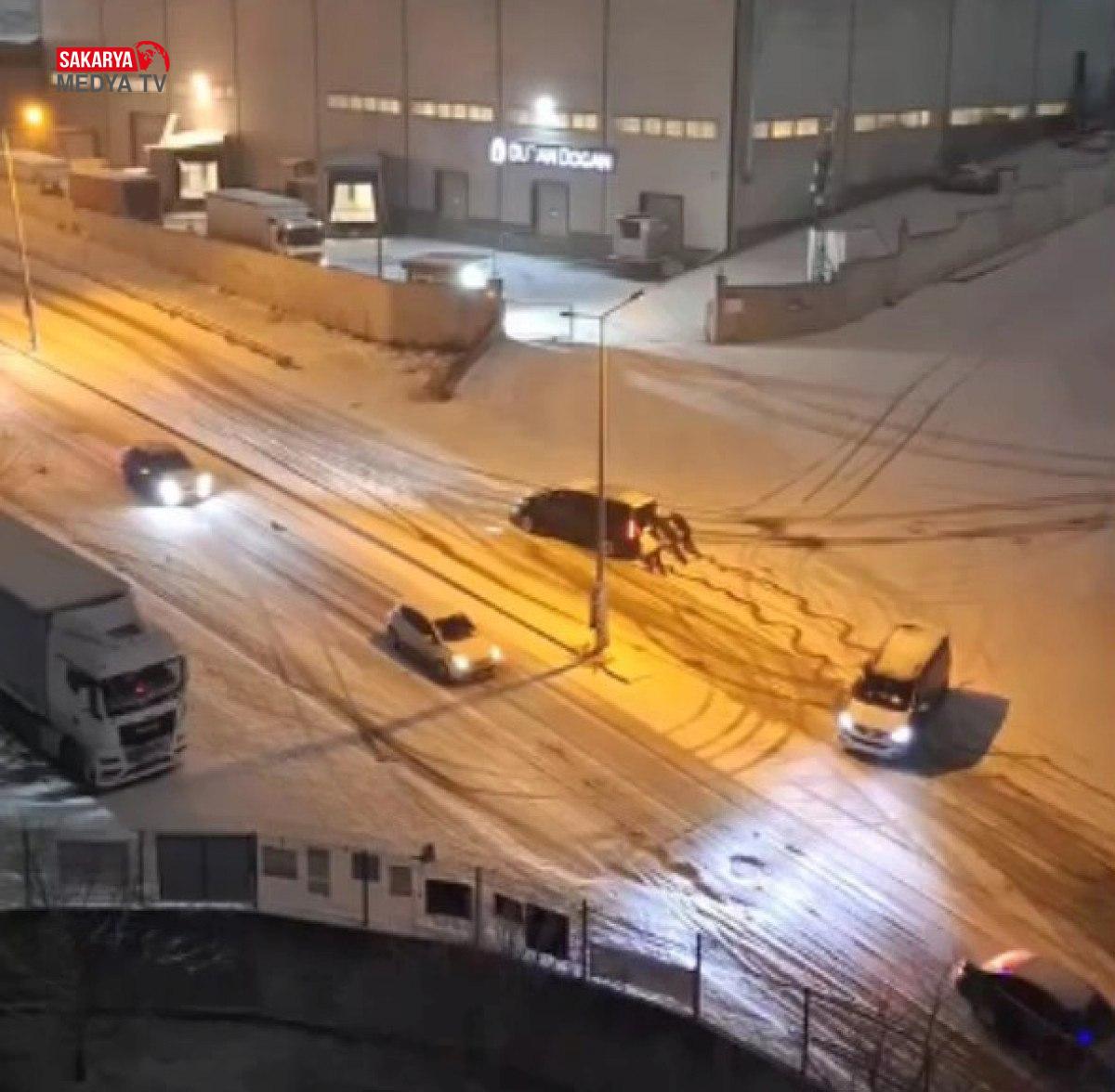 Beykoz’da Polonezköy yolunda seyir halindeki araba, kar yağışı nedeniyle şoförünün direksiyon hakimiyetini kaybetmesi sonucu denetimden çıkarak şarampole devrildi. Otomobil bulunduğu yerden cazip vasıtasıyla çıkarıldı.