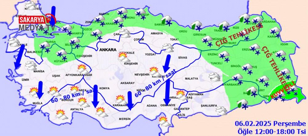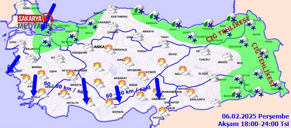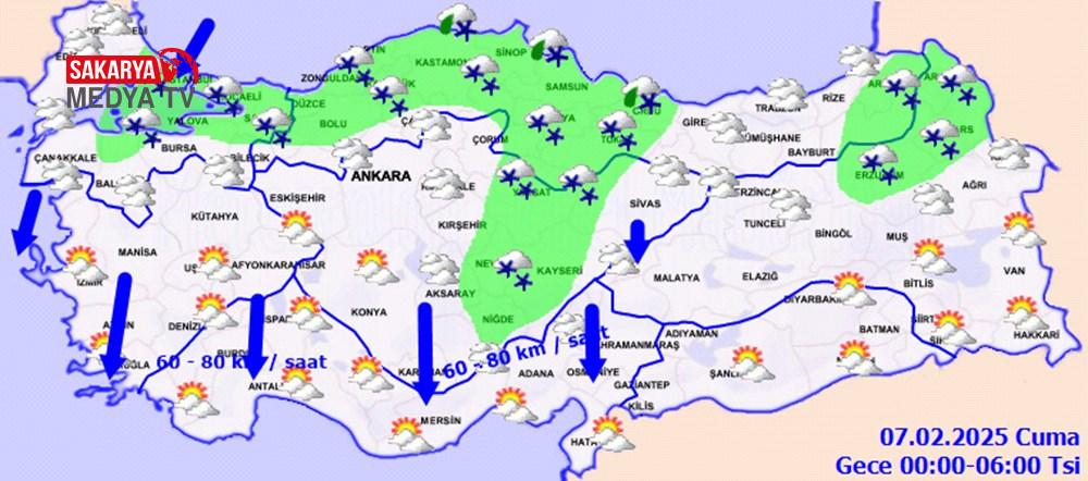 Meteoroloji Genel Müdürlüğü tarafından yapılan varsayımlara nazaran bugün, yurt genelinin modüllü ve çok bulutlu, Marmara’nın doğusu, İç Anadolu’nun doğusu, Karadeniz, Doğu ve Güneydoğu Anadolu ile Hatay ve Kütahya etrafları, Kahramanmaraş ve Osmaniye’nin doğusu, Eskişehir’in batısının yağışlı geçeceği iddia ediliyor. Yağışların; Hatay etrafları ile Güneydoğu Anadolu’nun güneyinde yağmur, yağış alan öbür yerlerde karlakarışık yağmur ve kar formunda olmak üzere Doğu Anadolu’nun batısı, Doğu Karadeniz’in iç kısımları ile Kocaeli, Sakarya, Yalova, Bursa, Zonguldak, Bartın, Düzce, Kastamonu’nun kıyı kesitleri, İstanbul’un iç ve yüksek kısımları, Hakkari ve Şırnak etraflarında kuvvetli olması bekleniyor.