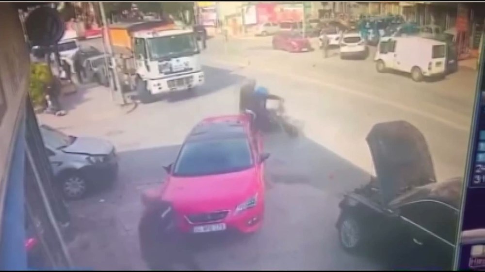 Bir kişinin yaralandığı akın anı bir iş yerinin güvenlik kamerasıyla kaydedildi.