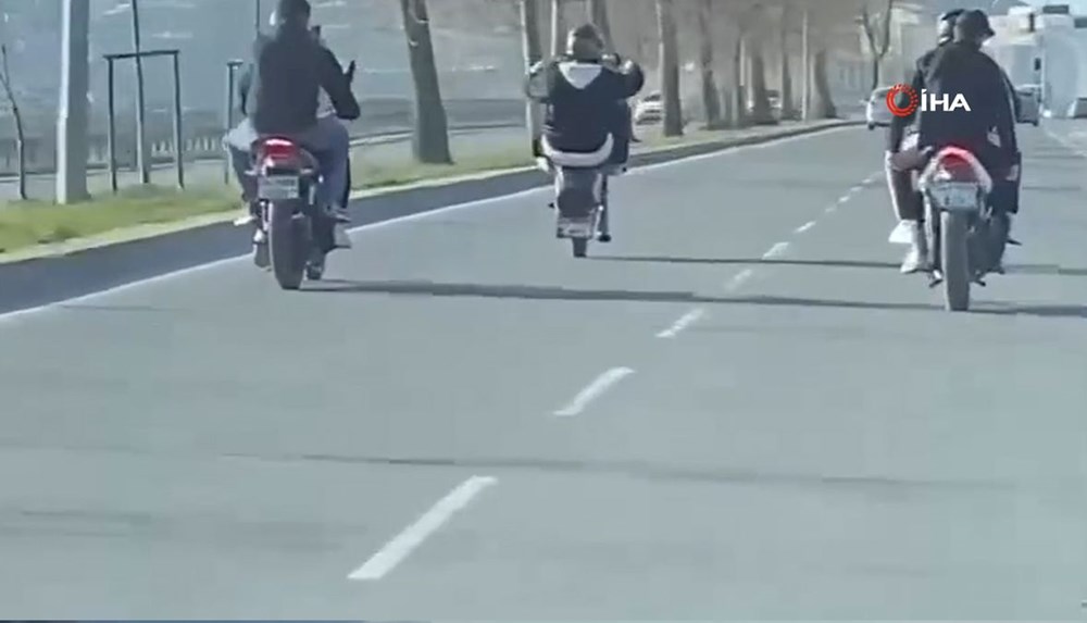 İmgelerde caddede yan yana dizilen motosikletlilerin öteki araçların geçişine müsaade vermediği ve tek tekerlek üzerinde seyahat yaptığı görüldü.