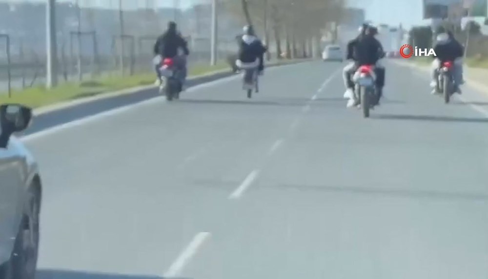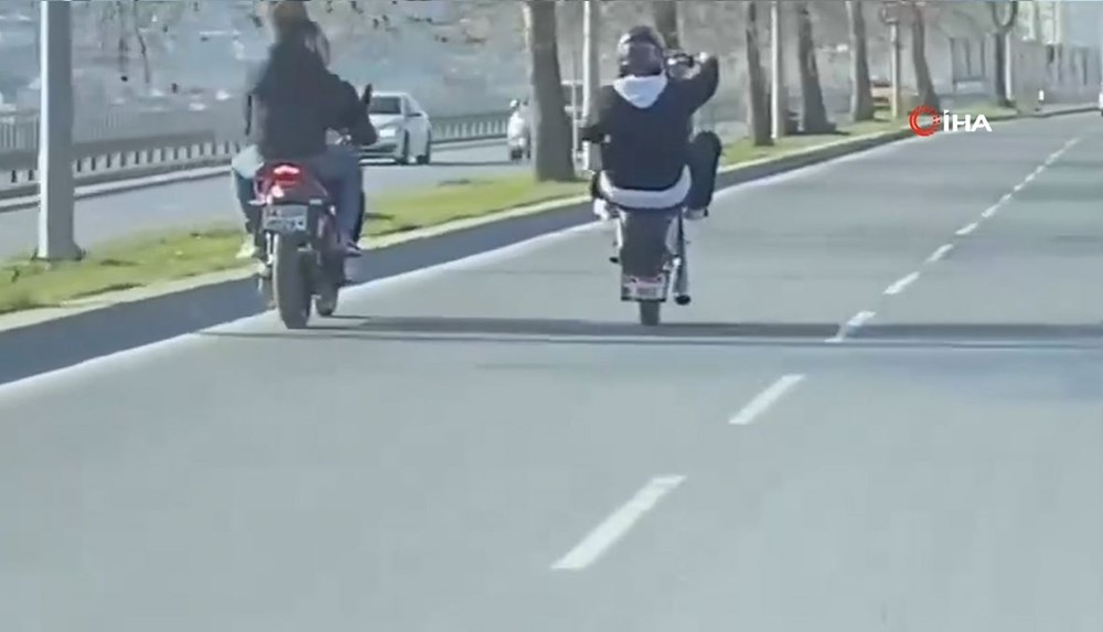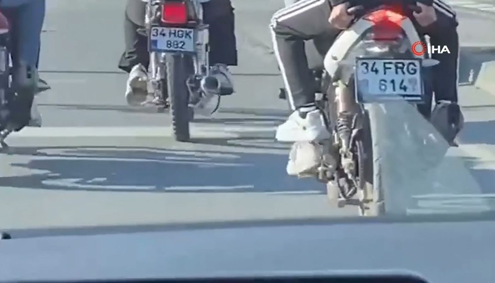 Hem kendilerini hem de trafiktekileri tehlikeye atan motosikletlilere başka şoförler reaksiyon gösterdi.