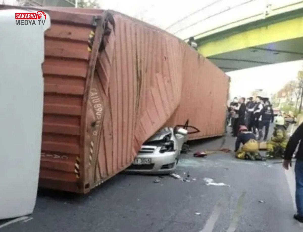 11 Mart’ta yine üst geçide çarpan tır sol tarafında seyreden 34 TY 3045 plakalı otomobilin üzerine devrilmişti.