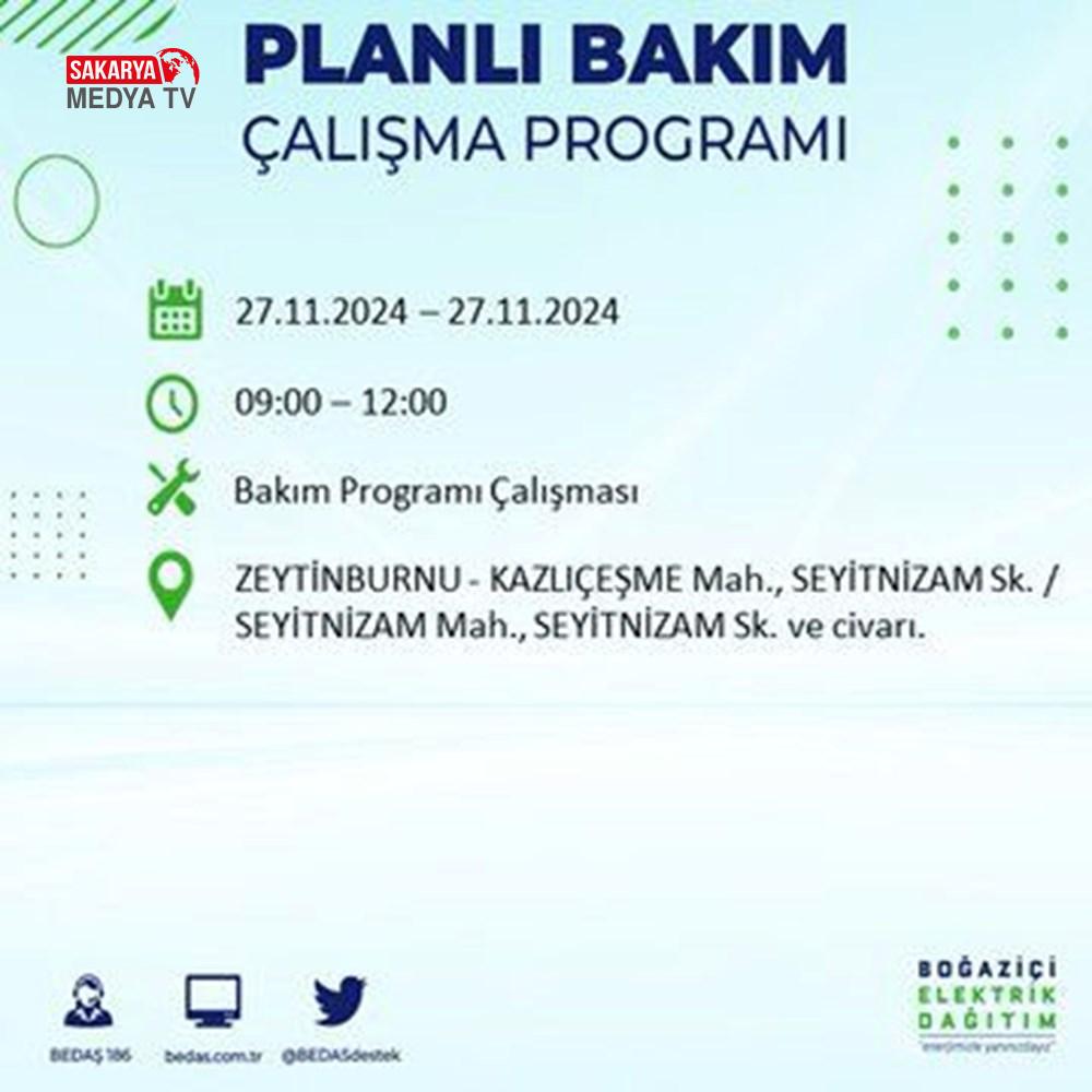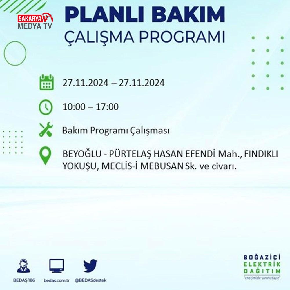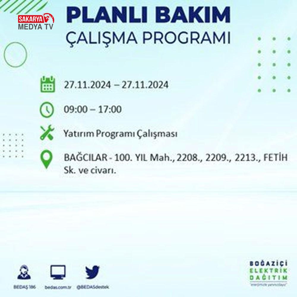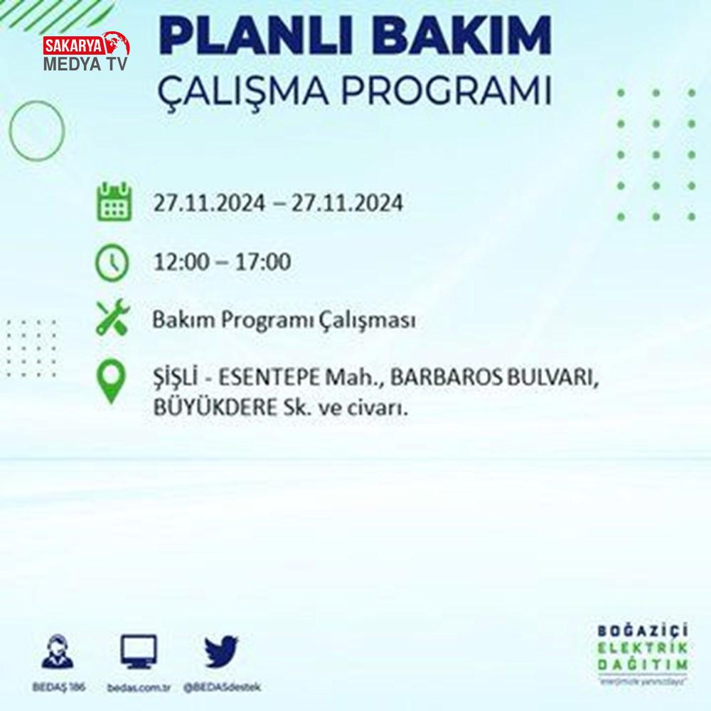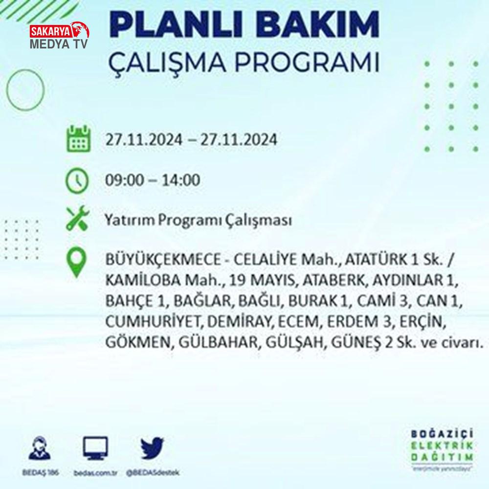 BEDAŞ, 27 Kasım elektrik kesintisi programını paylaştı.