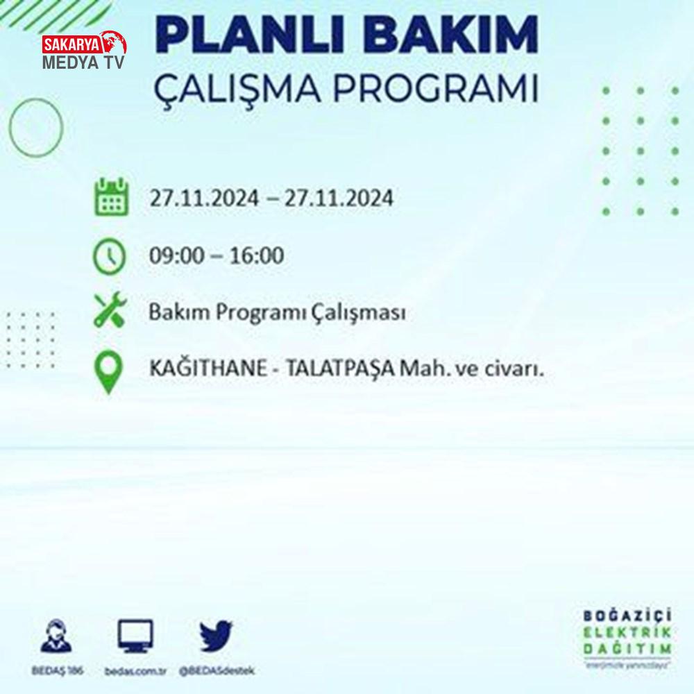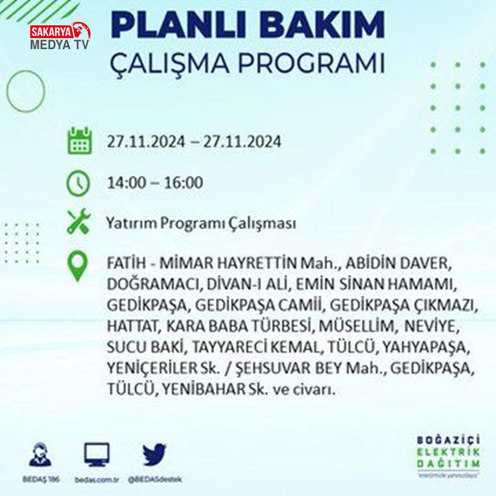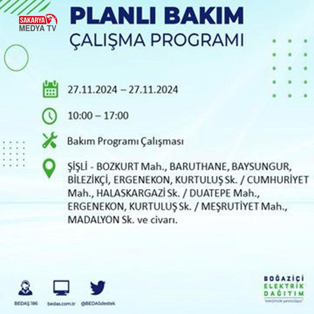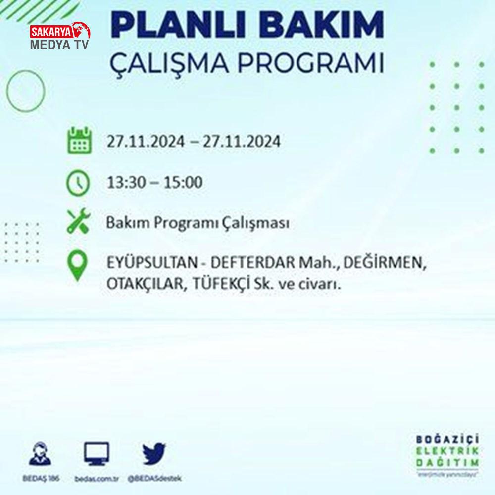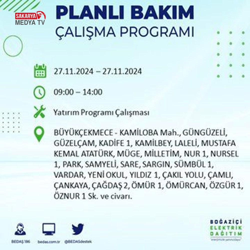 BEDAŞ, 27 Kasım elektrik kesintisi programını paylaştı.