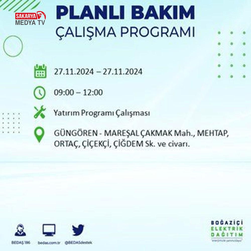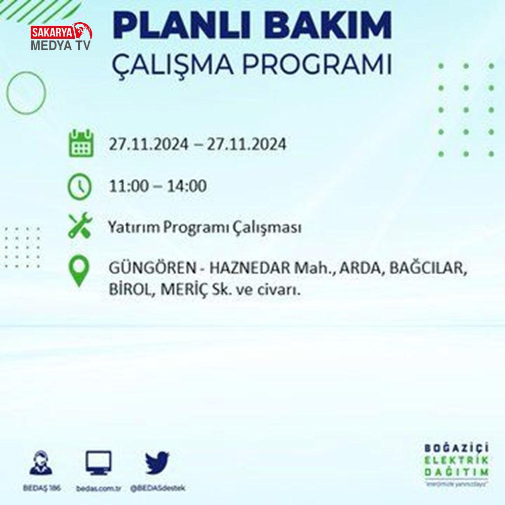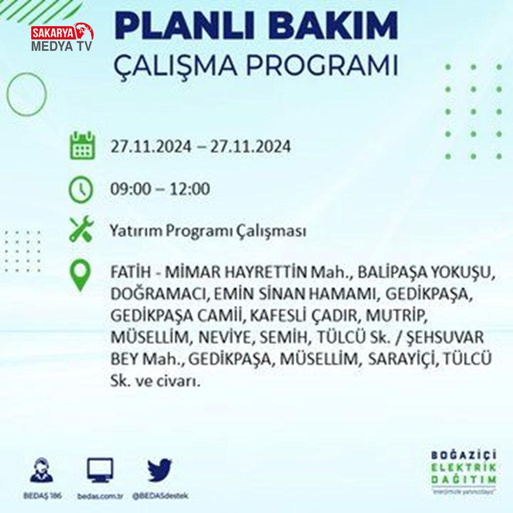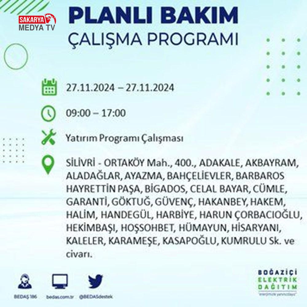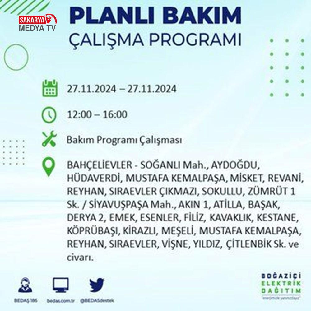 BEDAŞ, 27 Kasım elektrik kesintisi programını paylaştı.
