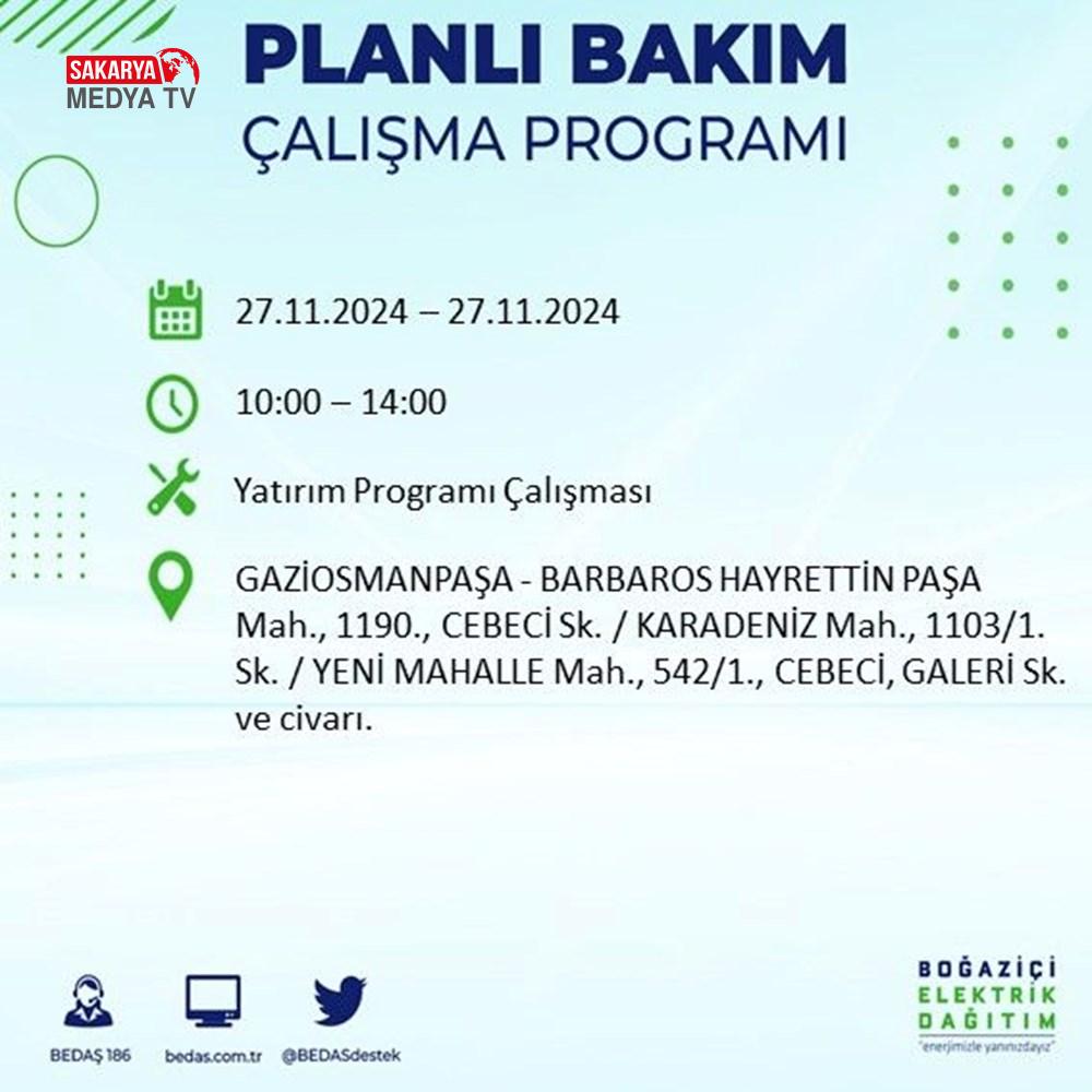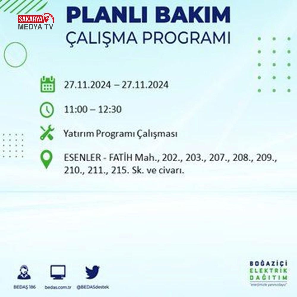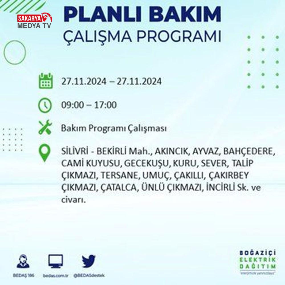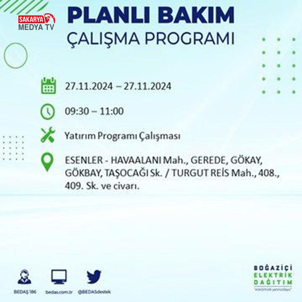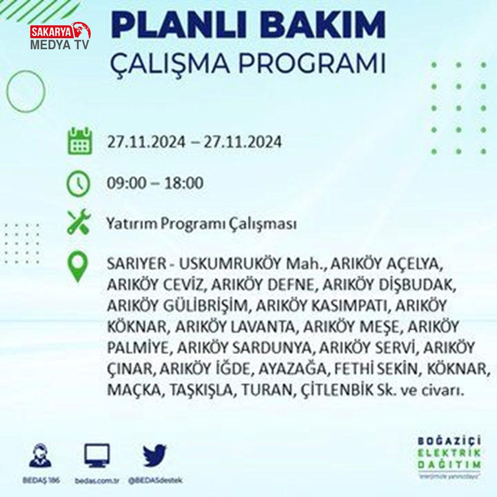BEDAŞ, 27 Kasım elektrik kesintisi programını paylaştı.