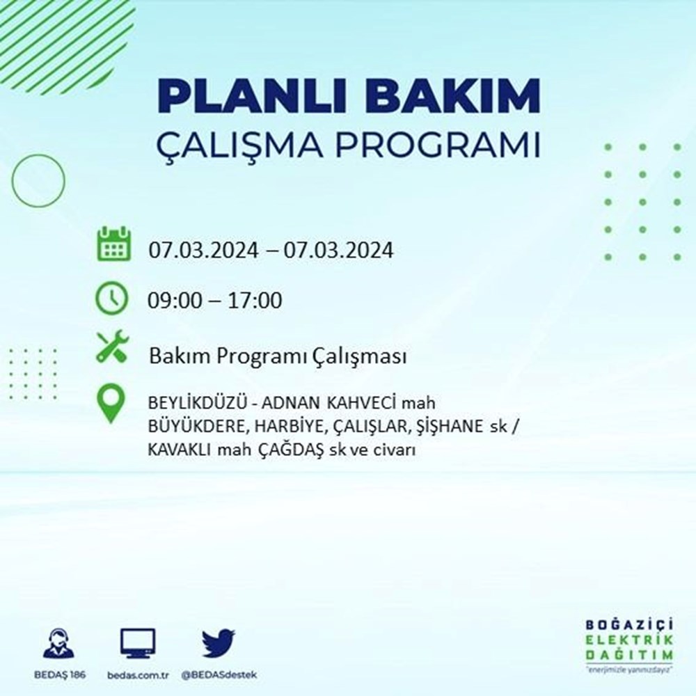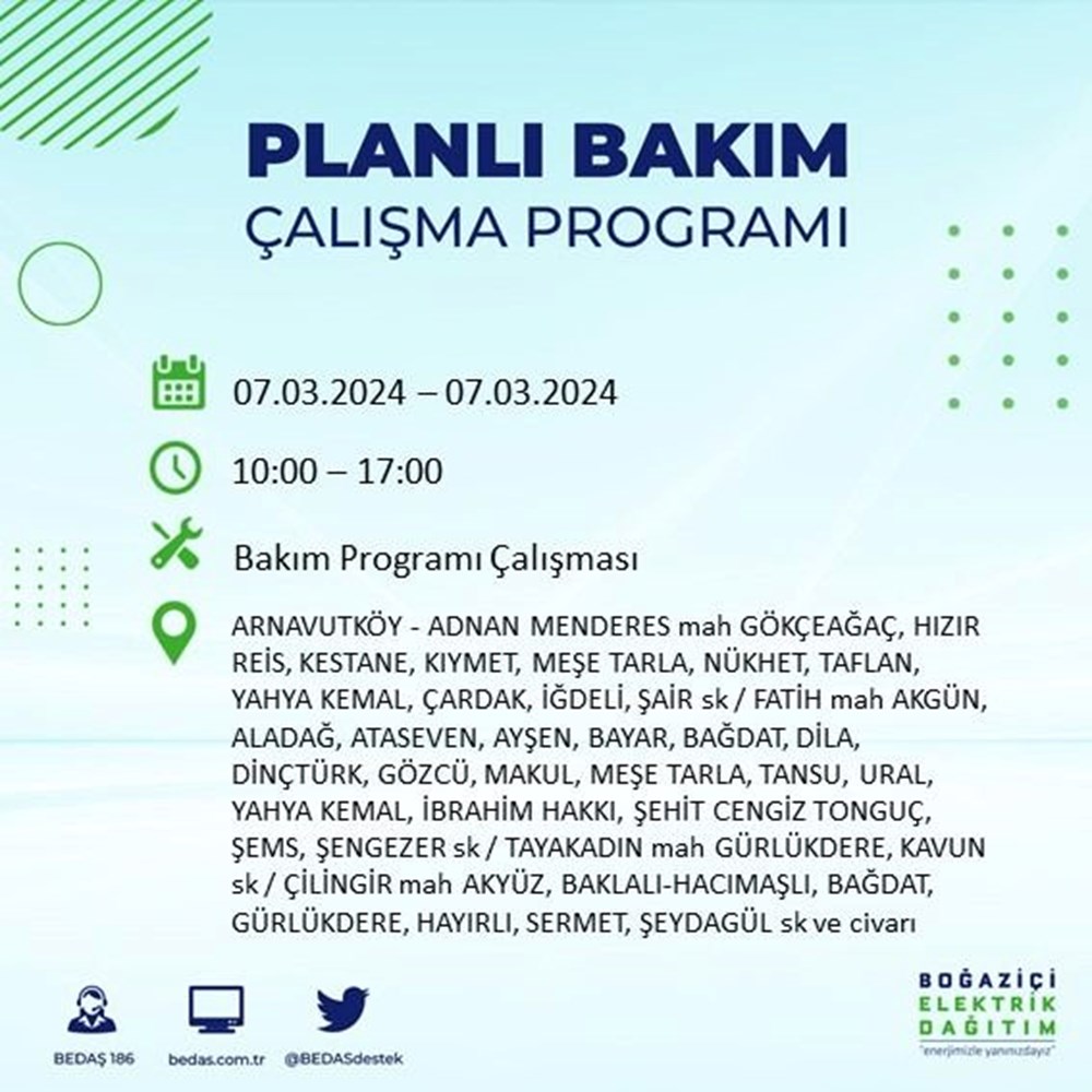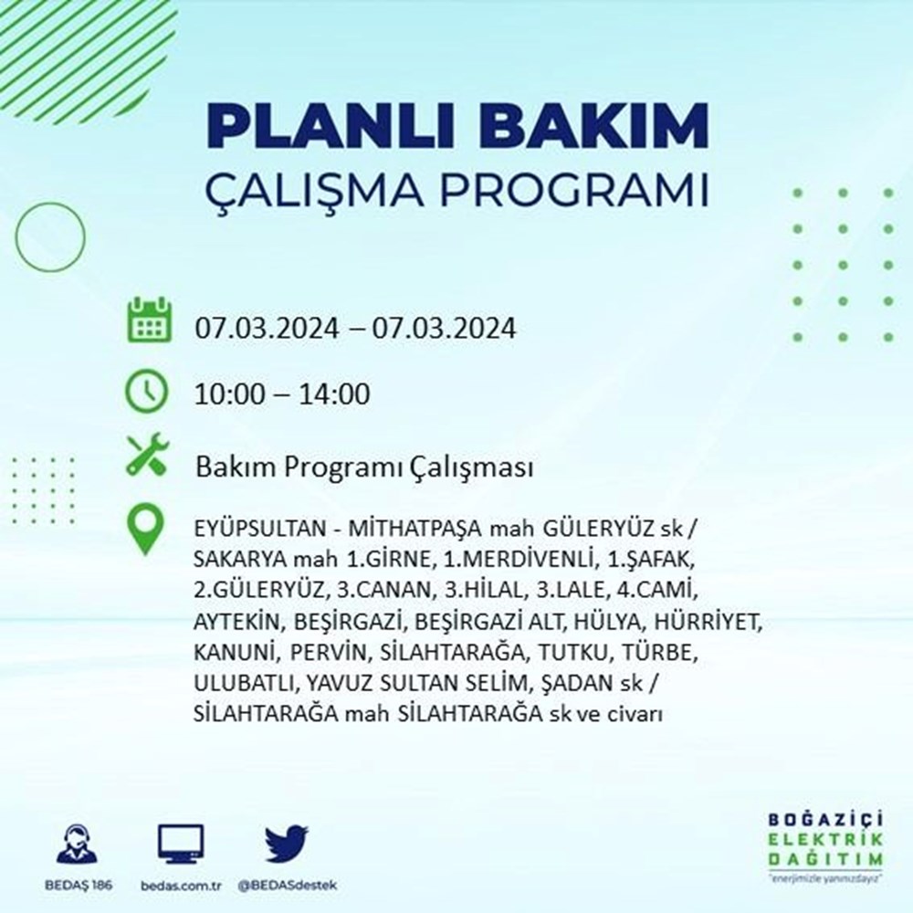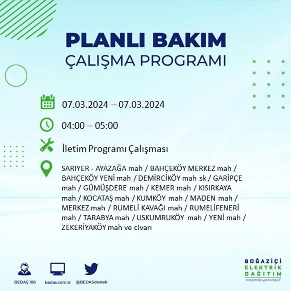 7 MART BEDAŞ ELEKTRİK KESİNTİSİ