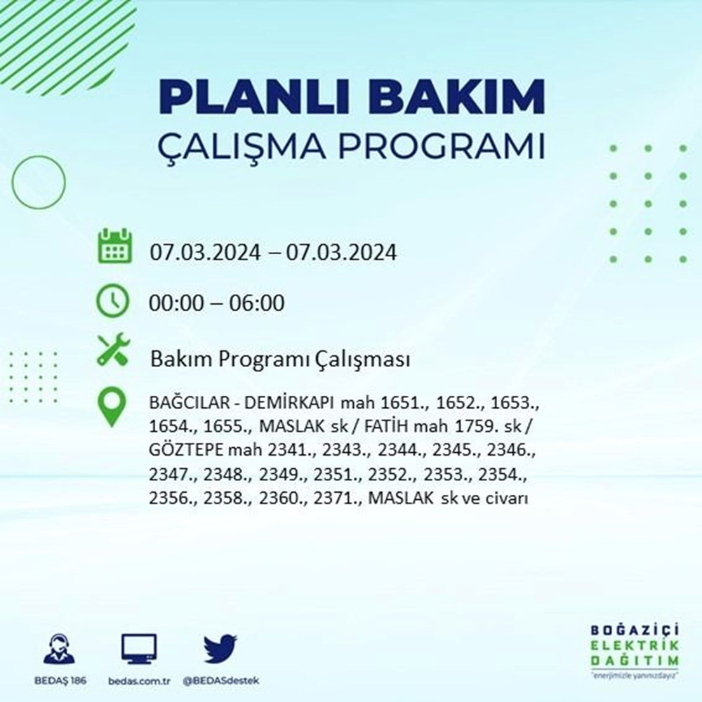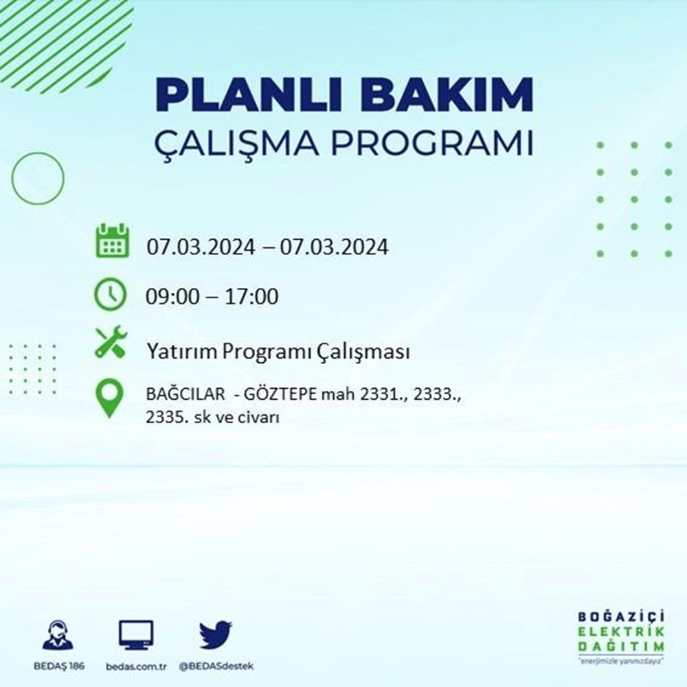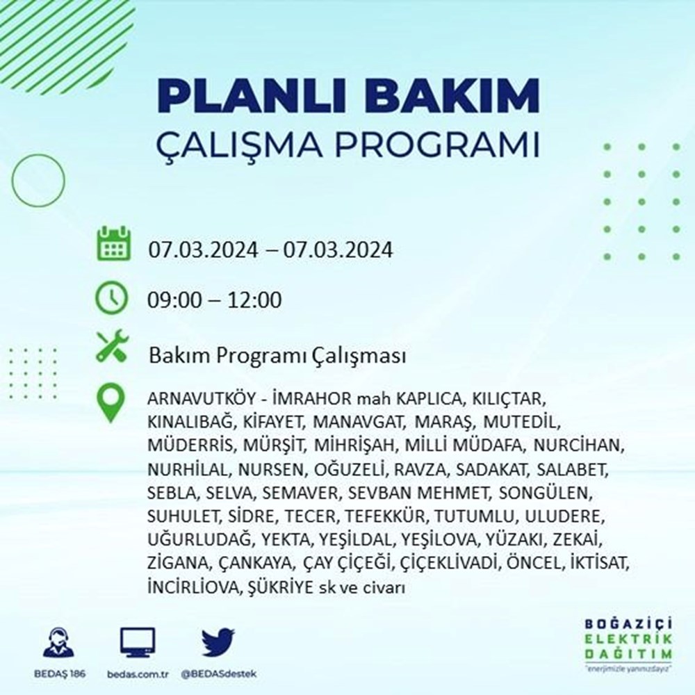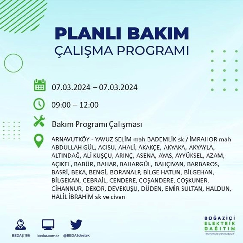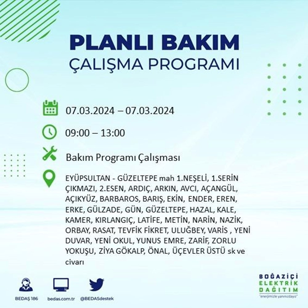 7 MART BEDAŞ ELEKTRİK KESİNTİSİ